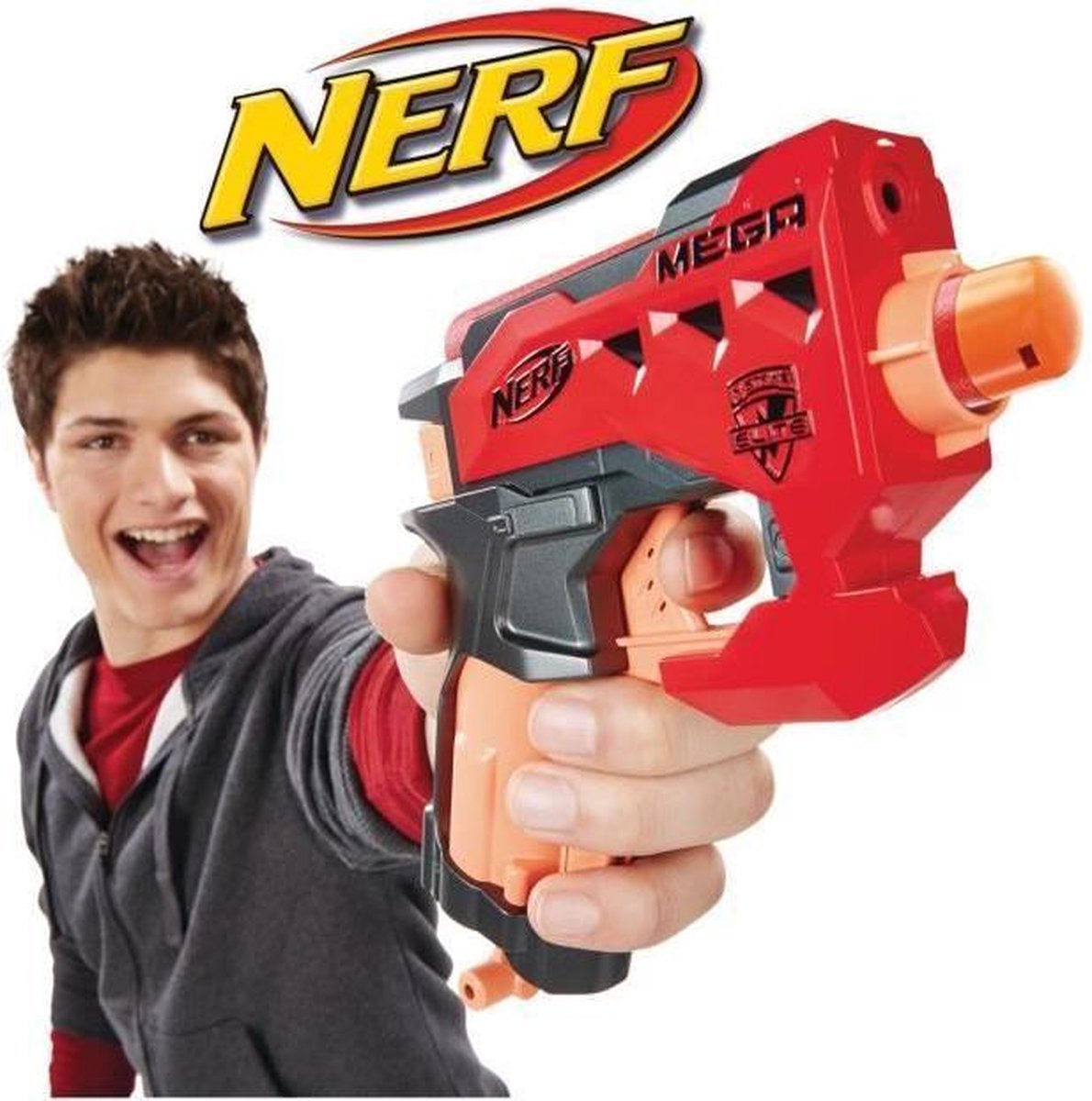 Alter, dieser NERF BigShock ist ja mal richtig krass! Sieht klein und unscheinbar aus, aber die Power hat's in sich. Mit den speziellen MEGA Whistler-Darts fliegt das Teil einfach mega weit und macht dabei noch dieses coole Pfeifgeräusch. Perfekt für schnelle Nerf-Schlachten im Garten oder Park. \\n\\nUnd das Beste: Der zweite Dart wird praktisch am Blaster selbst verstaut - immer griffbereit für den nächsten Schuss! Kein langes Suchen in der Tasche, einfach rausziehen und loslegen. \\n\\nObwohl der Blaster so kompakt ist, packt er richtig rein. Die Darts fliegen weiter als bei so manchem größeren Modell. Und das Laden ist total simpel: Dart rein, Spannen, abdrücken! \\n\\nAb 8 Jahren ist das Ding freigegeben, aber seien wir mal ehrlich - auch so mancher Erwachsene hat damit schon seinen Spaß gehabt. Perfekt für Geburtstage, Spielenachmittage oder einfach mal so zum Dampf ablassen. \\n\\nAchtung: Die Darts pfeifen wirklich laut - also besser nicht in der Wohnung benutzen, sonst beschweren sich noch die Nachbarn! Aber draußen? Einfach nur geil!
