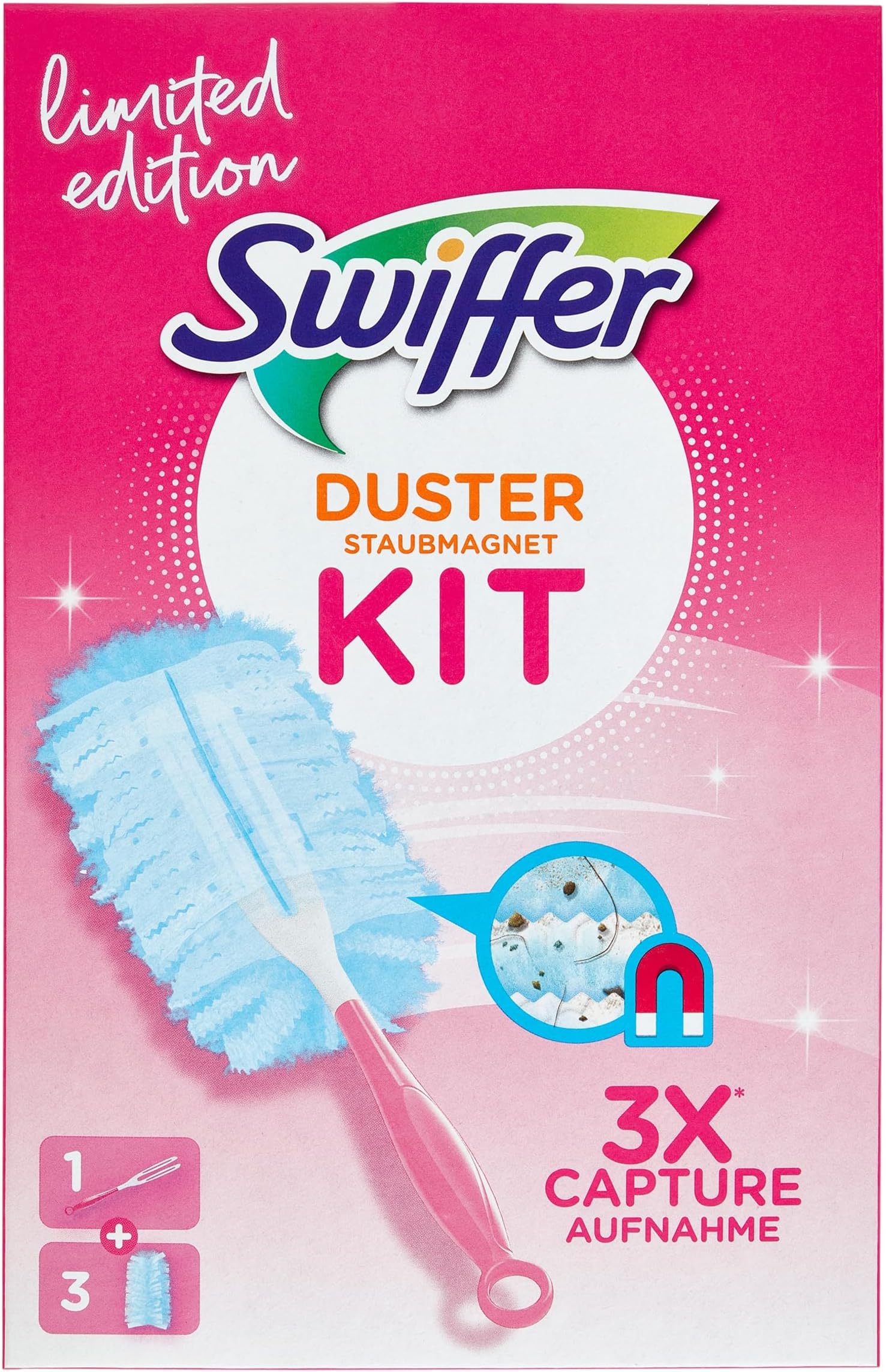 Staub ist echt lästig, oder? Mit dem NEWE Staubmagnet wird's easy. Das Nachfüllpack hat 20 Stück + nen praktischen Teleskopstiel. Die 360°-Köpfe mit extra vielen Mikrofasern fangen 5x mehr Staub auf einmal. Egal ob Jalousien, Bücherregale oder Möbel – überall dran. Und der Clou: Die Teile sind super statisch, der Staub fliegt nicht rum. Passt auch zu Swiffer Staubmagneten. Einfach auspacken, zusammenstecken und lossaugen – deine Wohnung wird staubfrei, versprochen!