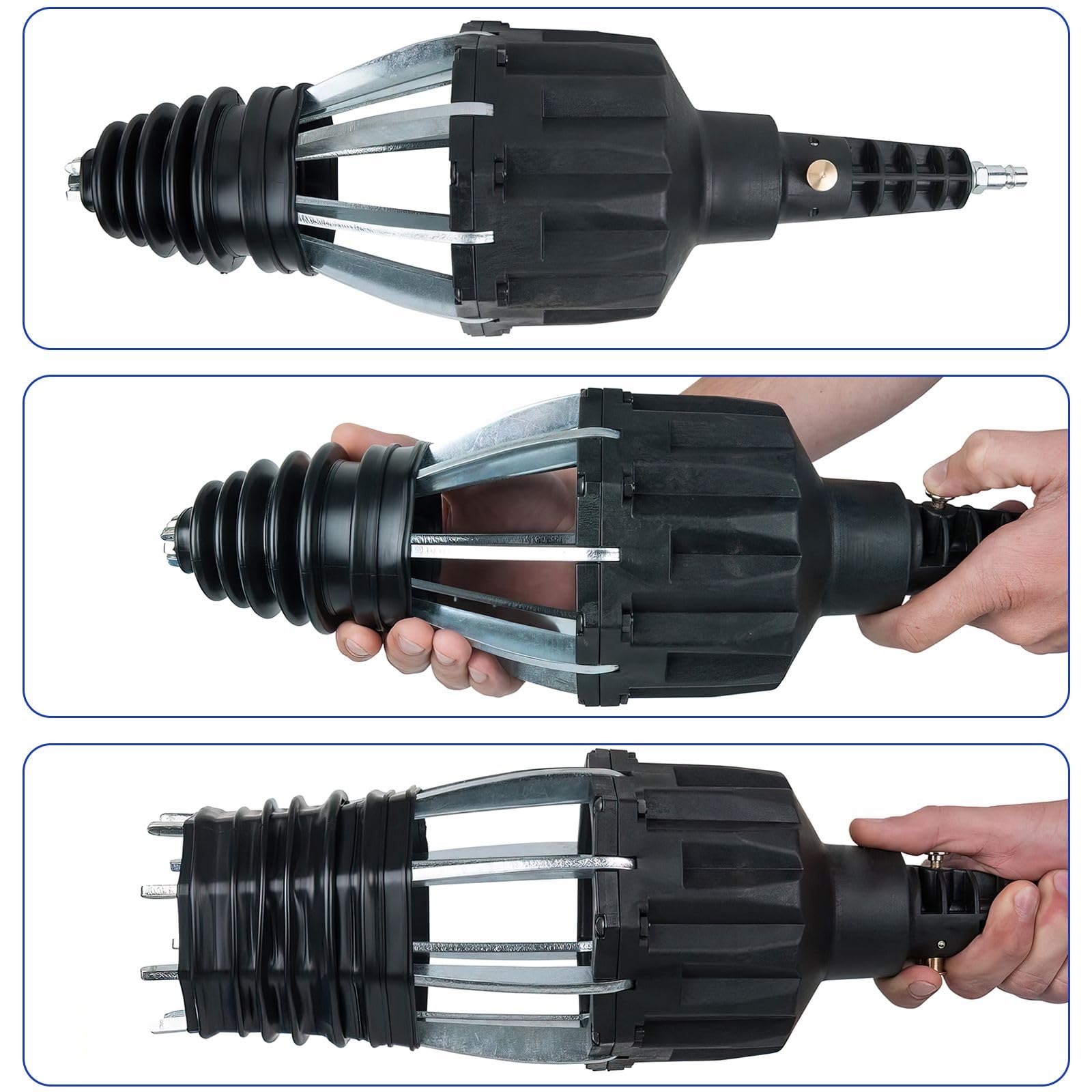 Das Tool ist aus robuster Aluminiumlegierung und Metall - rostfrei und mega langlebig. Der Spreizbereich von 20-100mm deckt so ziemlich alle Pkw und leichte Nutzfahrzeuge ab. Mit 8 Spannarmen wird die Manschette gleichmäßig und schonend aufgeweitet.