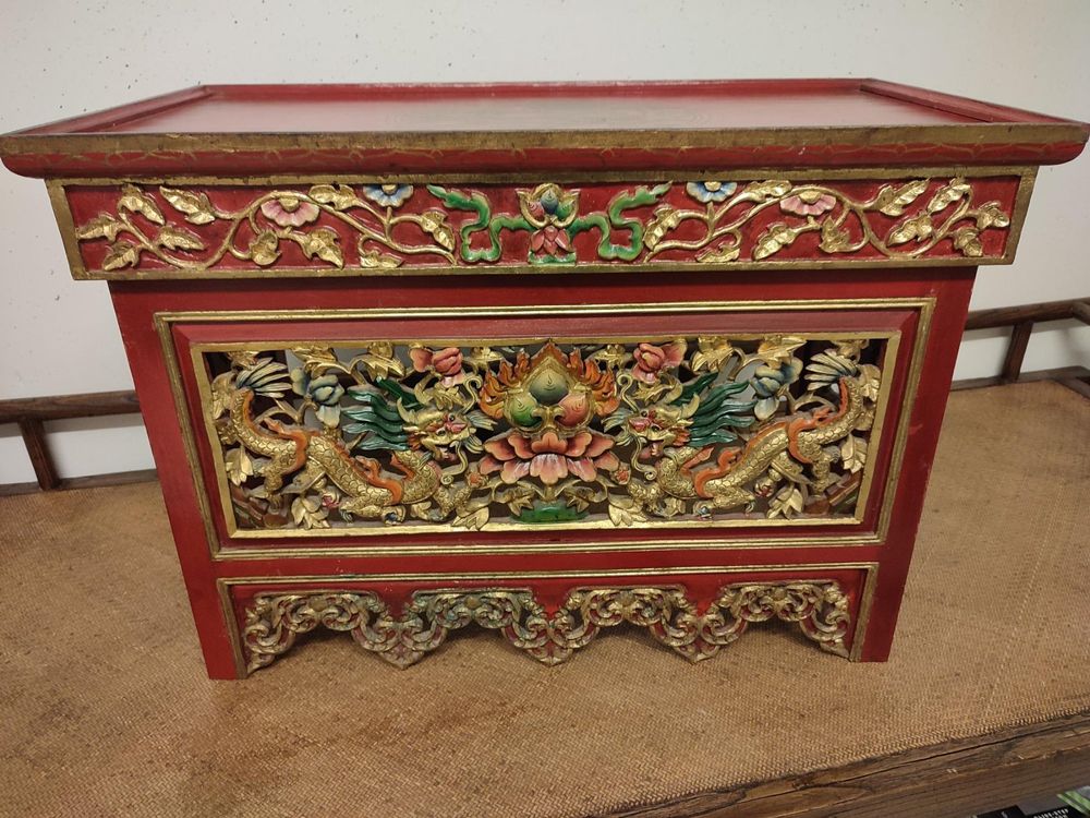 Wow, was für ein wunderschöner Altartisch! Dieser massive Bambustisch bringt sofort Ruhe und Harmonie in dein Zuhause. Mit stolzen 102cm Höhe (und 39cm Tiefe) ist er ein echter Hingucker und bietet plenty Platz für deine Buddha-Statue, Räucherstäbchen, Opfergaben oder was auch immer dir für deine Meditation wichtig ist. Das Tolle: Er hat eine ausziehbare Platte, die zusätzliche Stellfläche bietet, ohne dass mehr Platz benötigt wird. Und der integrierte Aufbewahrungsschrank mit Schubladen ist perfekt für all die kleinen Dinge wie Räucherwerk, Kerzen oder Meditationsutensilien. Aus dickem Bambus gefertigt, trägt der Tisch bis zu 100kg - also wirklich robust! Das chinesische Retro-Design mit den feinen Schnitzereien sieht einfach klasse aus. Ob für buddhistische Praktiken, Meditation, als Ahnenaltar oder einfach als stylisches Möbelstück - dieser Tisch ist super vielseitig. Die Montage ist übrigens kein Hexenwerk, mit der beiliegenden Anleitung kriegst du das hin! Einfach mit einem feuchten Tuch abwischen und der Tisch sieht aus wie neu. Übrigens: Statuen und andere Accessoires sind nicht im Lieferumfang enthalten - nur der Tisch selbst.