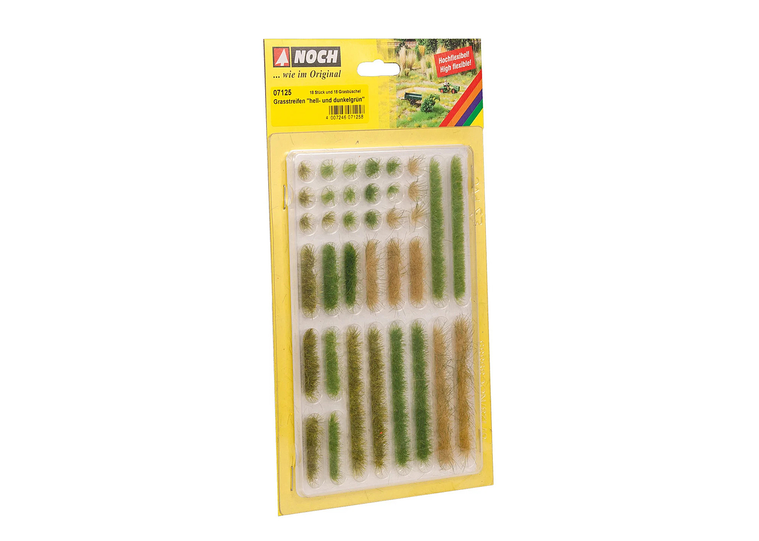 Für alle Modellbahn-Fans: Diese NOCH Grasstreifen machen deine Landschaft lebendig realistisch! Die Packung enthält 18 Grasstreifen (9x 3,5cm und 9x 7cm) plus 18 Grasbüschel in zwei Sommer-Farben. Mit hauchdünnem Klebefilm, der flexibel bleibt - kannst du sie also super anpassen. Perfekt für Feldwege, Straßenränder oder Waldränder. Geeignet für Spur N, TT, H0 und 0. Einfach aus der Packung nehmen und in die Landschaft kleben - fertig! Achtung: Ist kein Spielzeug, sondern für Modellbau ab 14 Jahren.