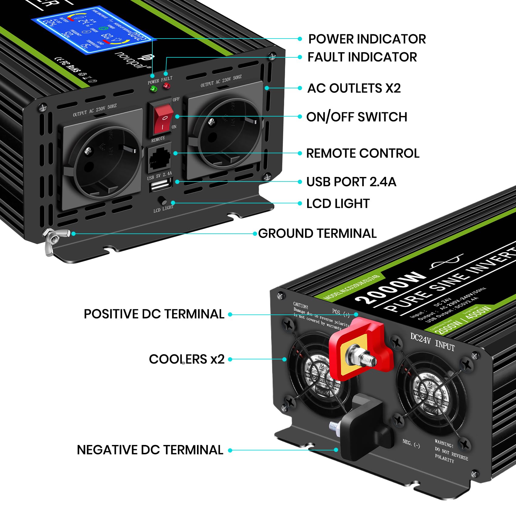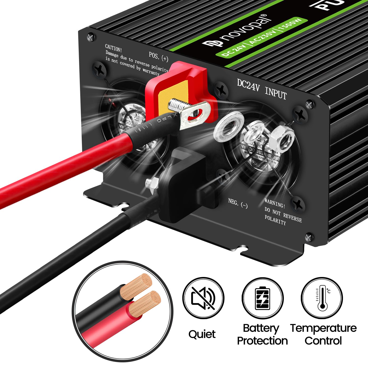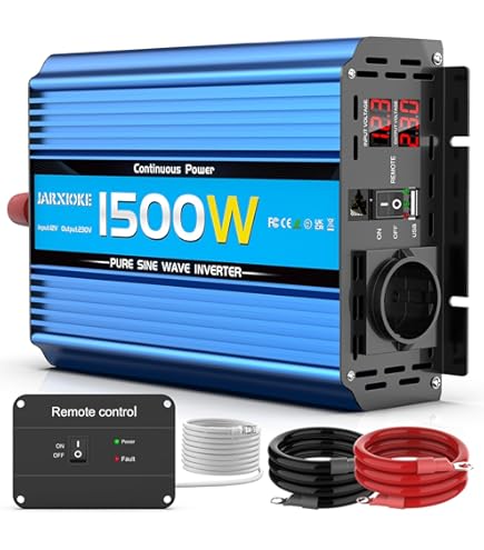 Perfekte mobile Stromversorgung für unterwegs! Dieser 1500W Wechselrichter von NOVOPAL wandelt 12V Batteriestrom in 230V Haushaltsstrom um - mit reiner Sinuswelle für empfindliche Geräte. Mit praktischem LCD-Display und 5m Fernbedienung. Technische Daten: 1500W Dauerleistung, 3000W Spitzenleistung, 2x 230V Steckdosen, USB-Anschluss. Ideal für Camping, Wohnmobil oder Baustelle. Vollständiger Schutz vor Überlast, Kurzschluss und Übertemperatur. Inklusive Batteriekabel und Sicherungen.