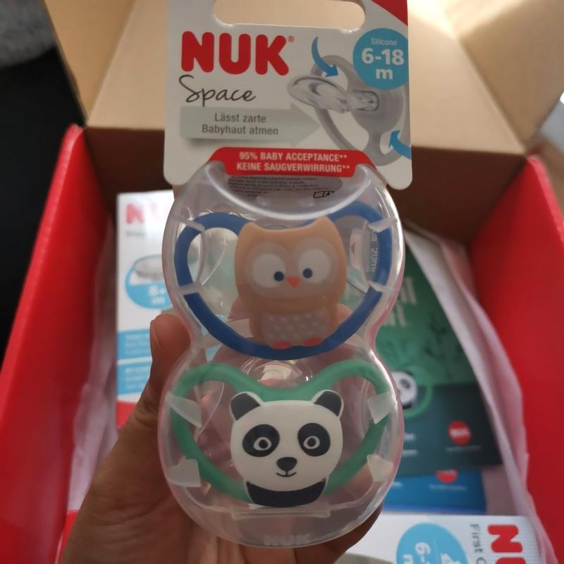 Frische Eltern aufgepasst! Diese NUK Space Schnuller sind perfekt für Babys von 0-6 Monaten. Mit extra großen Belüftungslöchern, damit die empfindliche Babyhaut atmen kann - super wichtig für zarte Haut! Die flache, dünne Brustwarze passt sich natürlich an den Mund an. Über 95% der Babys akzeptieren diesen Schnuller! Aus BPA-freiem Silikon und Made in Germany. Im Set mit 2 süßen Fuchs-Designs und praktischer Tragetasche, die sogar mikrowellengeeignet ist. Fördert die gesunde Entwicklung von Zähnen und Kiefer. Einfach das Beste für dein Baby!