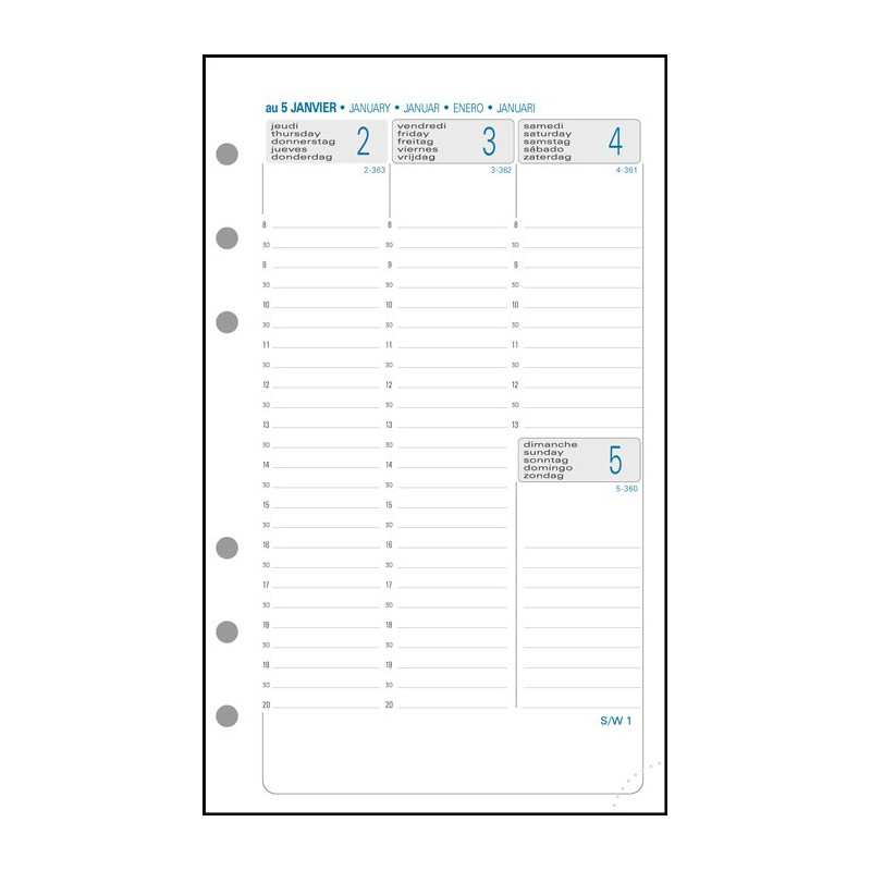 Organisation pur mit diesem Exacompta Wochenplaner-Nachfüllpack! Passt perfekt in deinen Exatime 17 Terminkalender. Mit 10,5x17,2cm genau die richtige Größe für unterwegs. Die Woche auf zwei Seiten - Montag bis Freitag von 8-20 Uhr, Samstag 8-13 Uhr und Platz für Sonntags-Notizen. Super übersichtlich mit vertikaler Zeitplanung. Gedruckt auf weißem Papier in blau und grau - sieht professionell aus und ist gut lesbar. Mit 6-Ring-Lochung passt es in die meisten Kalender. Deckt den Zeitraum von September 2024 bis Dezember 2025 ab - also perfekt für den Übergang ins neue Jahr. Mehrsprachig und mit halbstündlicher Terminplanung. Jahresübersicht für dieses und nächstes Jahr inklusive. Exacompta steht seit 1928 für Qualität - das merkt man! Ob für Büro, Studium oder privat - mit diesem Planer behältst du immer den Überblick!