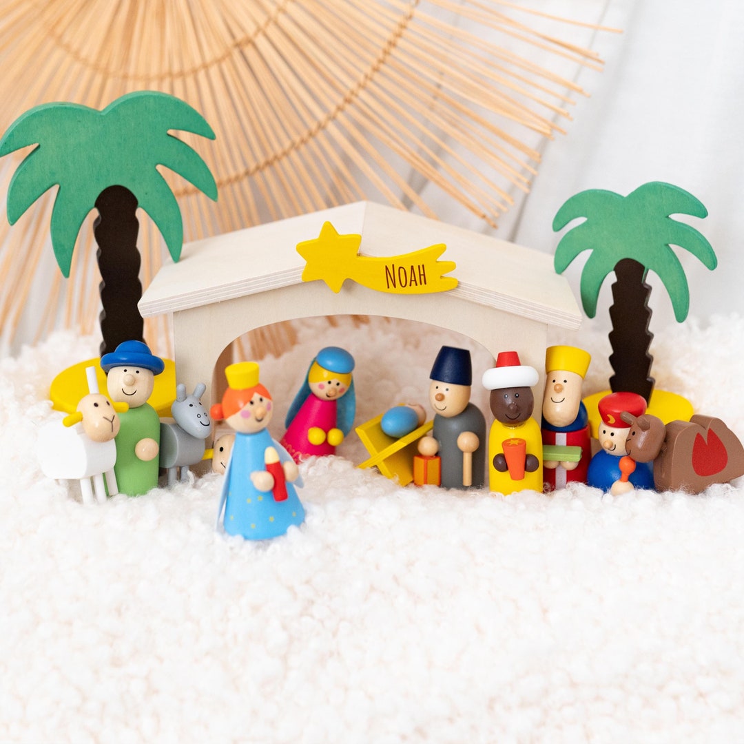 Personalisierte Weihnachtskrippe Nachtlicht - Gravur Mit Name, Holz & Acryl