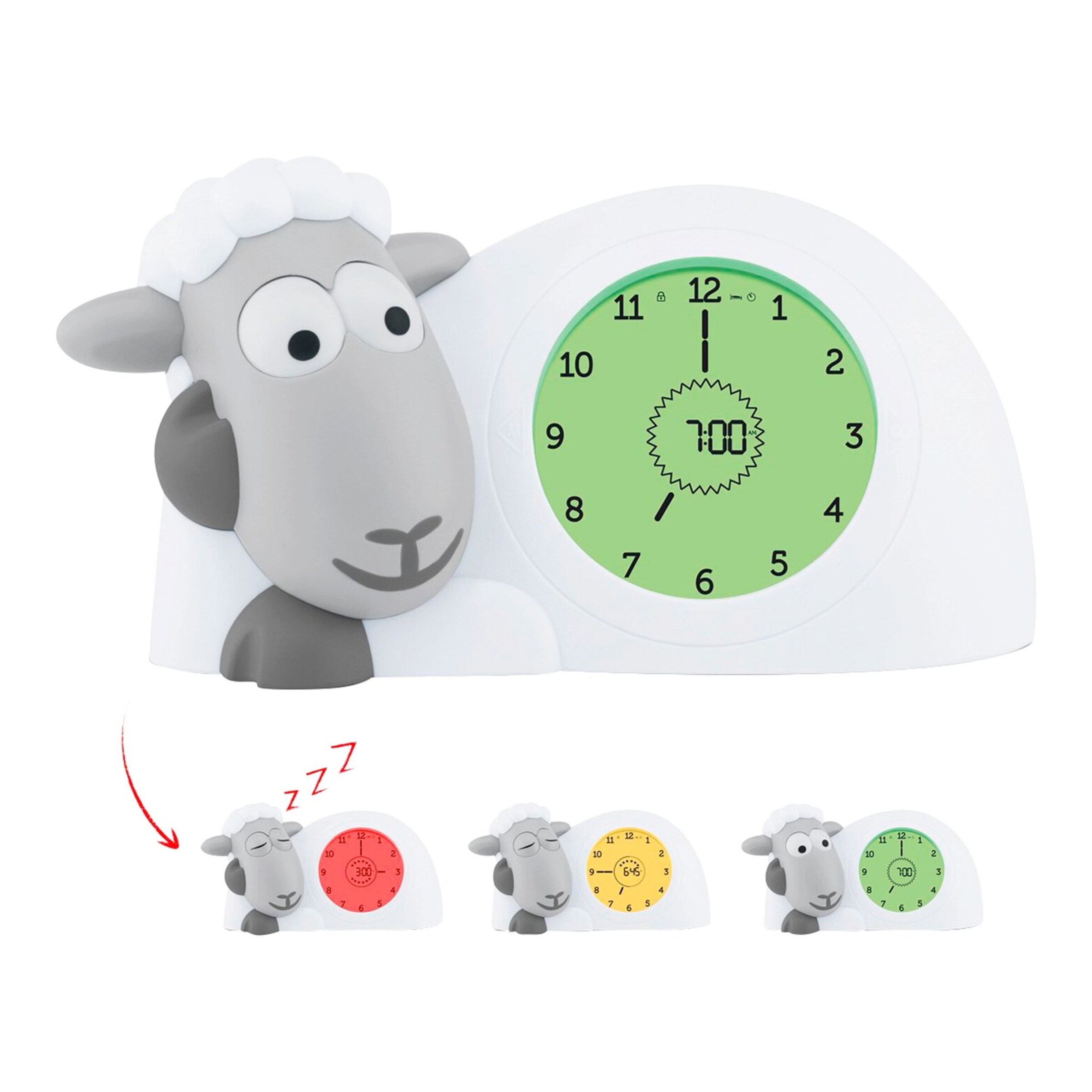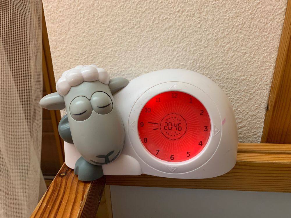 Dieser süße Schaf-Wecker ist der perfekte Schlafbegleiter für dein Kind! Mit cleverem Schlaftraining: Rotes Licht zeigt \Schlafenszeit\, gelbes Licht \Gleich aufstehen\ und grünes Licht \Jetzt aufstehen\. Das Nachtlicht hat 7 Farben und 2 Helligkeitsstufen - einfach antippen zum Wechseln. Mit 6 beruhigenden Weißrausch-Geräuschen (Regen, Meer, etc.) und 8 Lautstärkestufen. Die Schlummerfunktion gibt 5 Extra-Minuten (bis zu 3x). Aus weichem, stoßfestem Silikon - übersteht auch mal einen Fall vom Nachttisch. Display-Helligkeit in 3 Stufen regelbar. Wiederaufladbar - kein Batteriewechsel nötig. Hilft Kindern, selbstständig zu schlafen und gibt Eltern mehr Ruhe. Einfach niedlich und super praktisch!