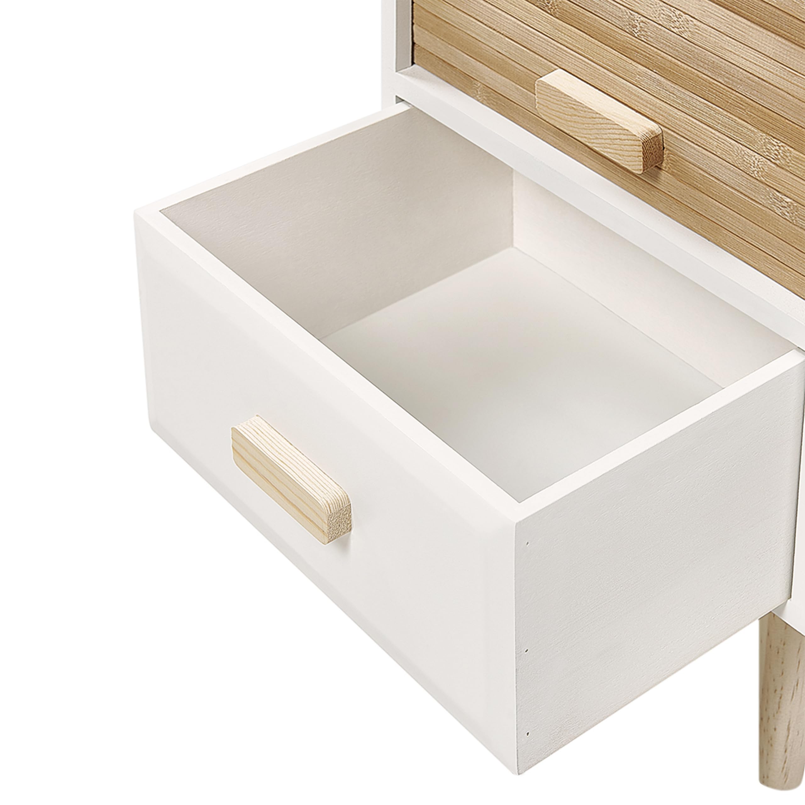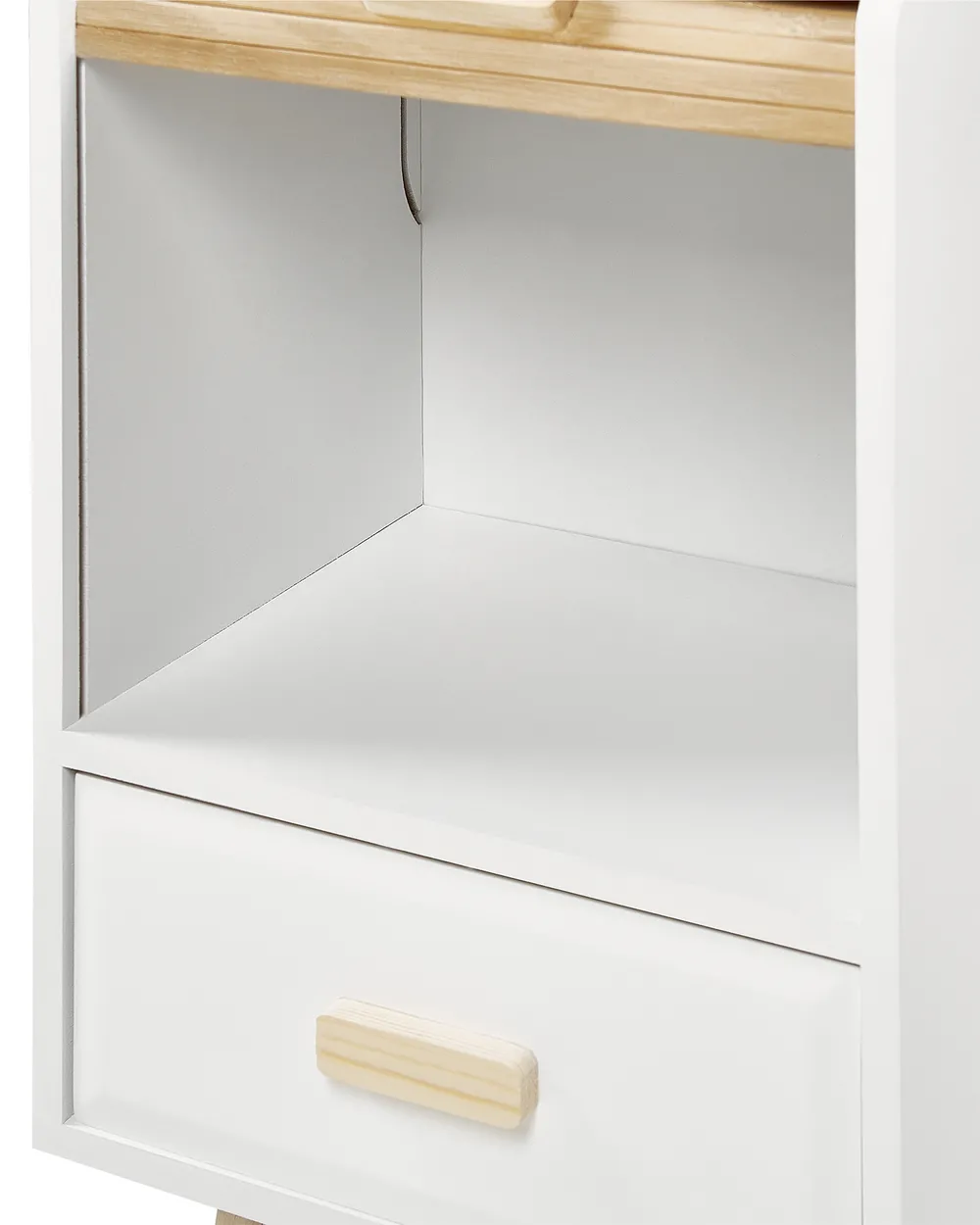 Nesika Nachttisch Mit Schublade & Schiebetür - Weiß & Hellholz