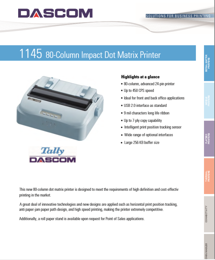 Dascom 24-Nadeldrucker 1145 - 450cps Mit USB & Ethernet Anschluss