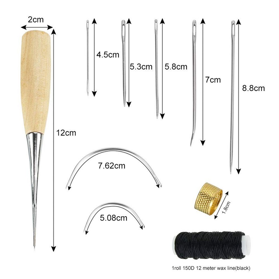 Hey du DIY-Fan! Dieses Nähset ist perfekt für alle, die gerne mit Leder arbeiten. Im Set findest du alles, was du brauchst: 7 verschiedene Ledernadeln in unterschiedlichen Größen und Formen - von 45 mm bis 88 mm. Dazu eine praktische Ahle mit Holzgriff, die sich super angenehm in der Hand hält. Besonders clever: Der mitgelieferte Kupfer-Fingerhut schützt deine Finger vor Stichverletzungen. Die Nadeln sind aus stabilem Edelstahl und verbiegen oder brechen nicht, selbst wenn du durch dickes Leder nähst. Mit dabei ist auch ein 12 Meter langes Sattlergarn aus Polyester - gewachst für bessere Handhabung. Ob du nun Ledertaschen reparieren, Polstermöbel aufarbeiten oder ganz neue Projekte wie Geldbeutel oder Gürtel angehen willst - mit diesem Set bist du bestens ausgestattet. Die verschiedenen Nadelformen sind spezialisiert auf unterschiedliche Materialien: Teppiche, Segeltuch, Matratzen und mehr. Super für Anfänger und erfahrene Heimwerker gleichermaßen. Einfach auspacken und loslegen - deine nächsten Lederprojekte warten!
