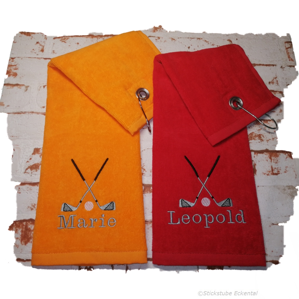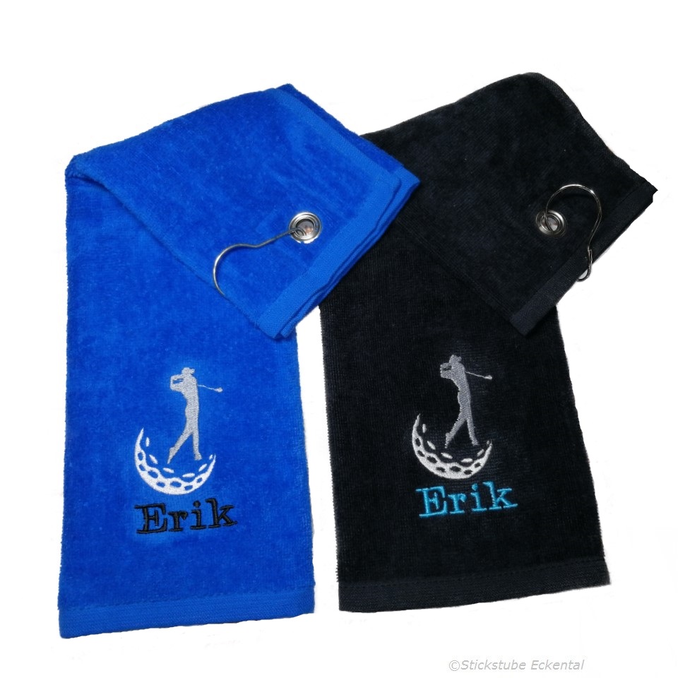 Das perfekte Geschenk für jeden Golf-Fan! Dieses personalisierte Golfhandtuch THE ONE wird mit deinem Wunschtext (max. 20 Zeichen) und eleganter Einrahmung bestickt. Aus hochwertiger 100% gekämmter Baumwolle (450 g/m²) ist es super saugstark und flauschig weich. Mit dem praktischen Karabinerhaken befestigst du es einfach an deinem Golfbag - immer griffbereit zum Reinigen von Schlägern und Bällen. Du kannst alles individuell gestalten: Handtuchfarbe, Motiv, Stickgarnfarben für Rahmen und Text, sowie die Schriftart. Öko-Tex zertifiziert, waschbar bei 60°C und trocknergeeignet (Karabiner vorher entfernen!). Die Maße von ca. 40x50 cm sind ideal für den Golfplatz. Wichtig: Da es sich um eine individuelle Anfertigung handelt, ist eine Rückgabe ausgeschlossen. Ob für dich selbst oder als besonderes Geschenk - dieses Golfhandtuch wird garantiert begeistern!