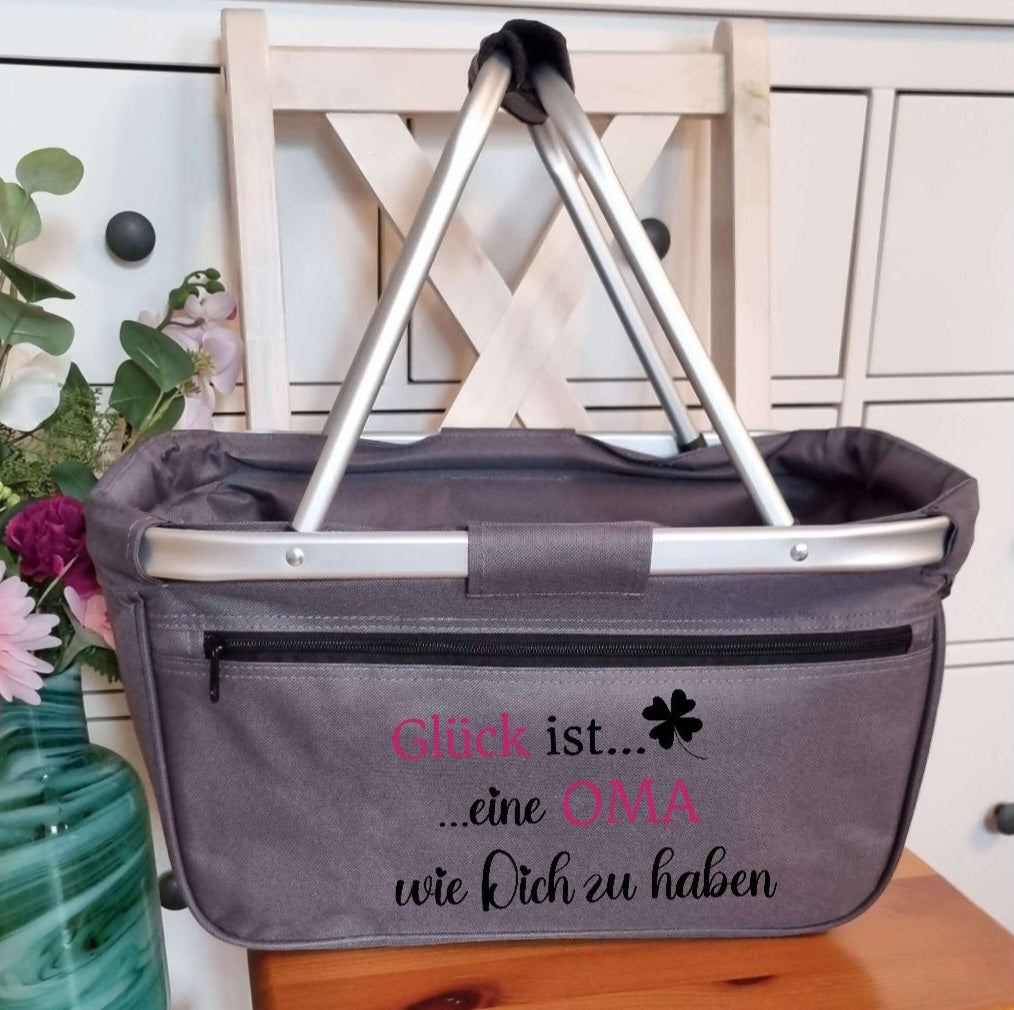 Suchst du einen Einkaufskorb, der wirklich zu dir passt? Dieser personalisierte Korb von AMBERGER DESIGN ist nicht nur super praktisch, sondern trägt auch deinen Namen! Mit dem süßen Herzschwung-Motiv wird er zum echten Hingucker. Und das Beste: Er wiegt nur 0,7 kg und lässt sich ganz einfach zusammenfalten - perfekt für unterwegs! Ob beim Einkaufen auf dem Markt, beim Camping oder Picknick - mit 20 Litern Fassungsvermögen hast du genug Platz für alles. Der gepolsterte Griff liegt super angenehm in der Hand, selbst bei schweren Einkäufen. Praktische Features wie die Innentasche mit Reißverschluss fürs Kleingeld und die Standfüße, die verhindern dass der Korb im Dreck steht, machen ihn zum perfekten Begleiter. Du kannst dir sogar die Druckfarbe aussuchen! Ein tolles Geschenk für jeden Anlass - ob Geburtstag, Vatertag oder einfach so als Aufmerksamkeit.