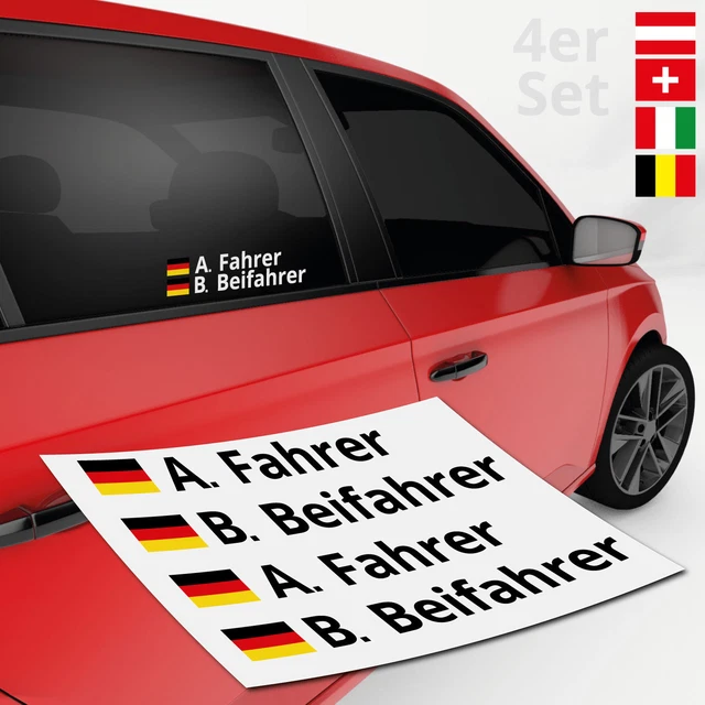 Zeig allen wer fährt! Diese coolen Namensaufkleber kannst du komplett individualisieren - mit deinem Namen und deiner Nationalflagge. Aus hochwertiger Oracal Folie, die wetterfest, UV-beständig und waschanlagenfest ist. Verfügbar in 3,4 oder 5cm Höhe. Perfekt für Auto, Motorrad, Helm, Kart oder Laptop. Einfach aufkleben - hält auf allen glatten Oberflächen. Lieferung: 2x Fahrer und 2x Beifahrer Aufkleber. Mach dein Fahrzeug unverwechselbar!