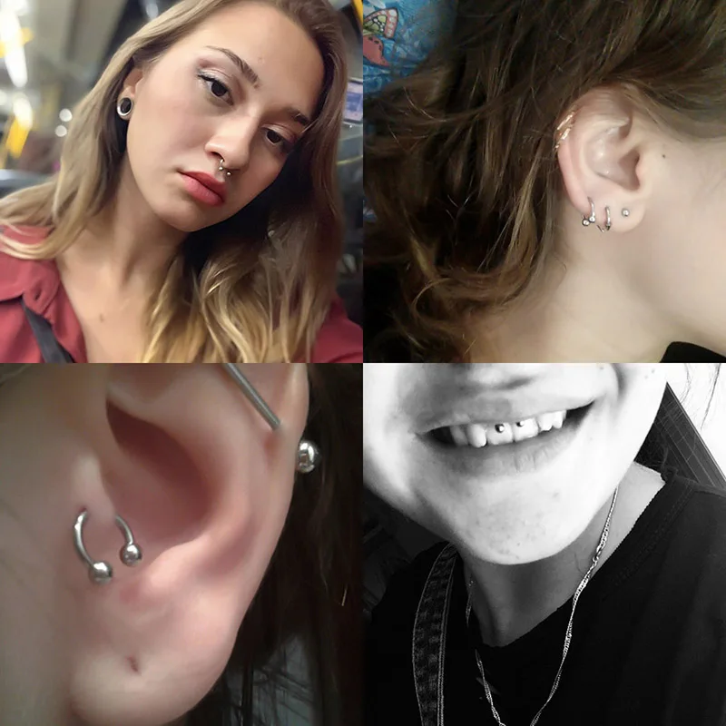 Hey, dieses Spike-Piercing-Set von ZS ist ja mal richtig abgefahren! Alles aus hochwertigem Edelstahl, nickelfrei und hypoallergen - also auch für empfindliche Haut geeignet. Im Set: 20G (0,8 mm) L-förmige Nasenstecker, 18G (1,0 mm) Helix-Ohrringe, und 16G (1,2 mm) Lippenringe mit 6/8/10 mm Stangenlänge. Auch für Septum, Tragus, Helix, Daith, Rook, Conch - einfach vielseitig. Die Spikes sind glatt poliert, tragen sich angenehm. 24 Teile insgesamt - 12 schwarz, 12 silber. Super als Geschenk für Piercing-Fans zu Geburtstag, Weihnachten oder Valentinstag. Aber Vorsicht: Die langen Spike-Kegel können spitz sein, also vorsichtig handhaben. Sieht einfach krass aus und macht was her. Einfach bestellen und dein Piercing-Sortiment erweitern! ZS Body Jewelry steht für Qualität, also da machst du nix verkehrt.