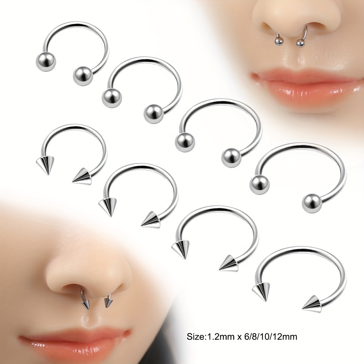 Total stylisches Piercing-Set mit 8 schwarzen Ringen aus 304 Chirurgenstahl! Im Lieferumfang sind je 2 Ringe in 6mm, 8mm, 10mm und 12mm Durchmesser - alles in 16G Stärke (1,2mm). Das nahtlose Design macht das Öffnen und Schließen super einfach und sicher. Perfekt für Septum, Nase, Ohr oder Lippe - ob als Tragus, Helix, Conch oder sogar Nippelpiercing. Der hochglanzpolierte Finish ist korrosionsbeständig und die Farbe hält ewig. Einfach und elegant für den täglichen Look oder besondere Anlässe. Toll als Geschenk für Geburtstage, Weihnachten oder Valentinstag. Zeig deine Persönlichkeit mit diesem vielseitigen Piercing-Set! Einfach die passende Größe wählen und deinen Style komplettieren. Qualität, die man sieht und spürt!