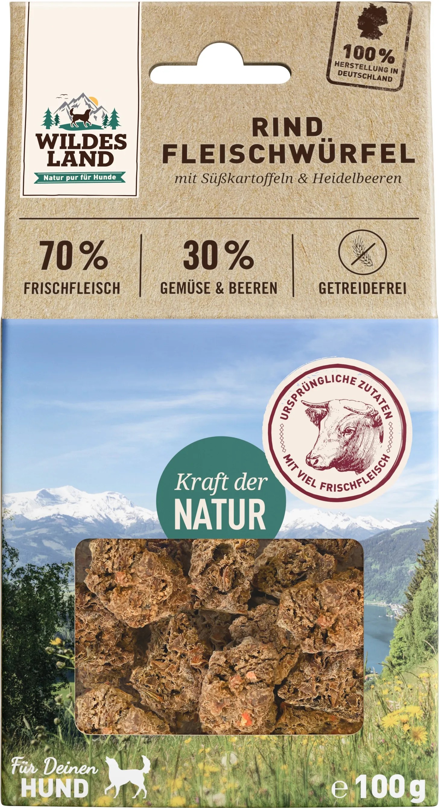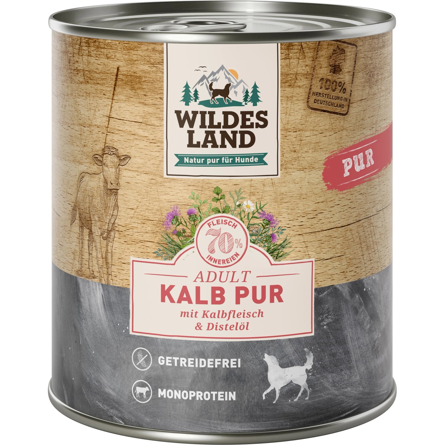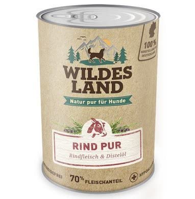 Dein Hund liebt Rind? Dann wird er Wildes Land Nassfutter Nr. 5 lieben! Mit satten 62% Fleischanteil - inklusive wertvollem Herzmuskel und Leber - ist dieses Futter eine wahre Proteinbombe. Die Rezeptur ist komplett getreide- und glutenfrei, ohne Zusatz von Zucker, Farb-, Aroma- oder Konservierungsstoffen. Verfeinert mit Süßkartoffeln, Heidelbeeren, Wildkräutern und Distelöl bietet es eine ausgewogene und artgerechte Ernährung. Hergestellt in Deutschland und ohne invasive Tierversuche, kannst du dieses Futter mit bestem Gewissen verfüttern. Die 12 Dosen à 400g reichen für eine ganze Weile und die beste Akzeptanz und Verträglichkeit sorgen dafür, dass dein Liebling jeden Happen genießt. Natur pur für einen gesunden und glücklichen Hund!