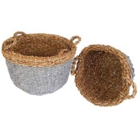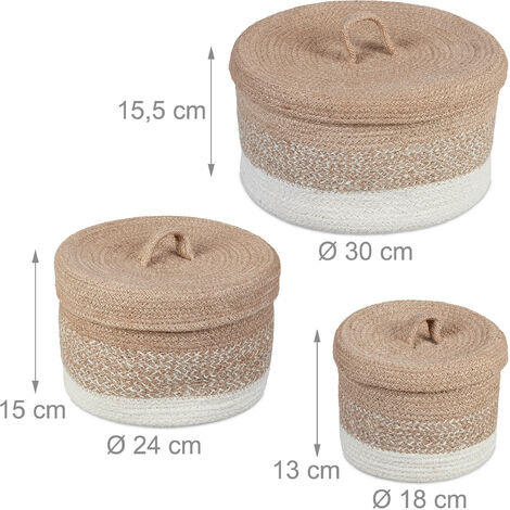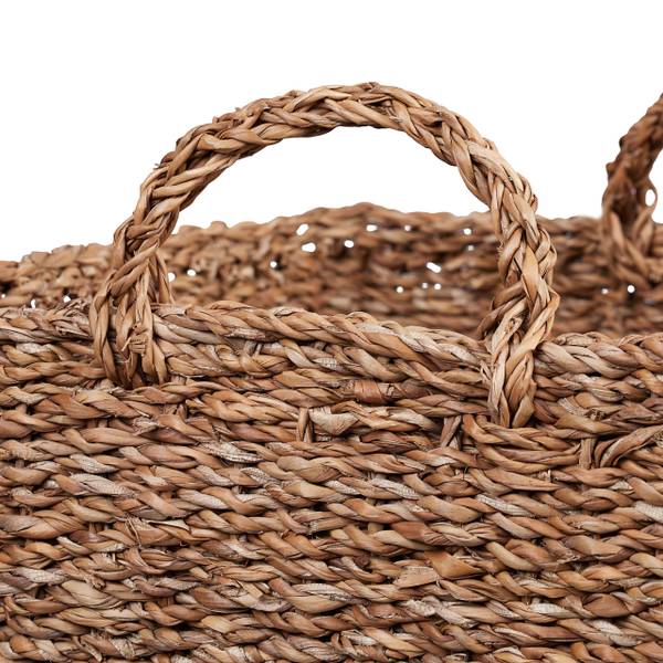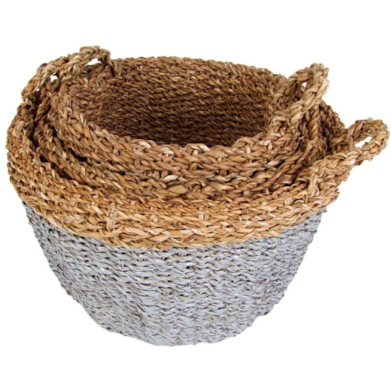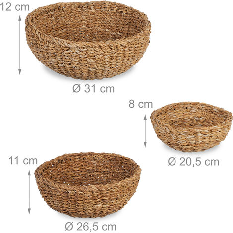 Total praktisch dieses 3er Set aus natürlichem Seegras! Die runden Körbe sehen nicht nur hübsch aus, sondern bringen auch Ordnung in dein Zuhause. Mit 3 verschiedenen Größen - klein (8x20,5cm), mittel (11x26,5cm) und groß (12x31cm) - passt für alles: Kosmetik im Bad, Socken im Schrank, Kleinzeug im Wohnzimmer. Die geflochtene Optik macht sich in jedem Raum gut. Und das Beste: Sie lassen sich platzsparend ineinander stapeln! Aus 100% natürlichem Seegras, also umweltfreundlich noch dazu. Endlich kein Chaos mehr mit diesen stylischen Helferlein!