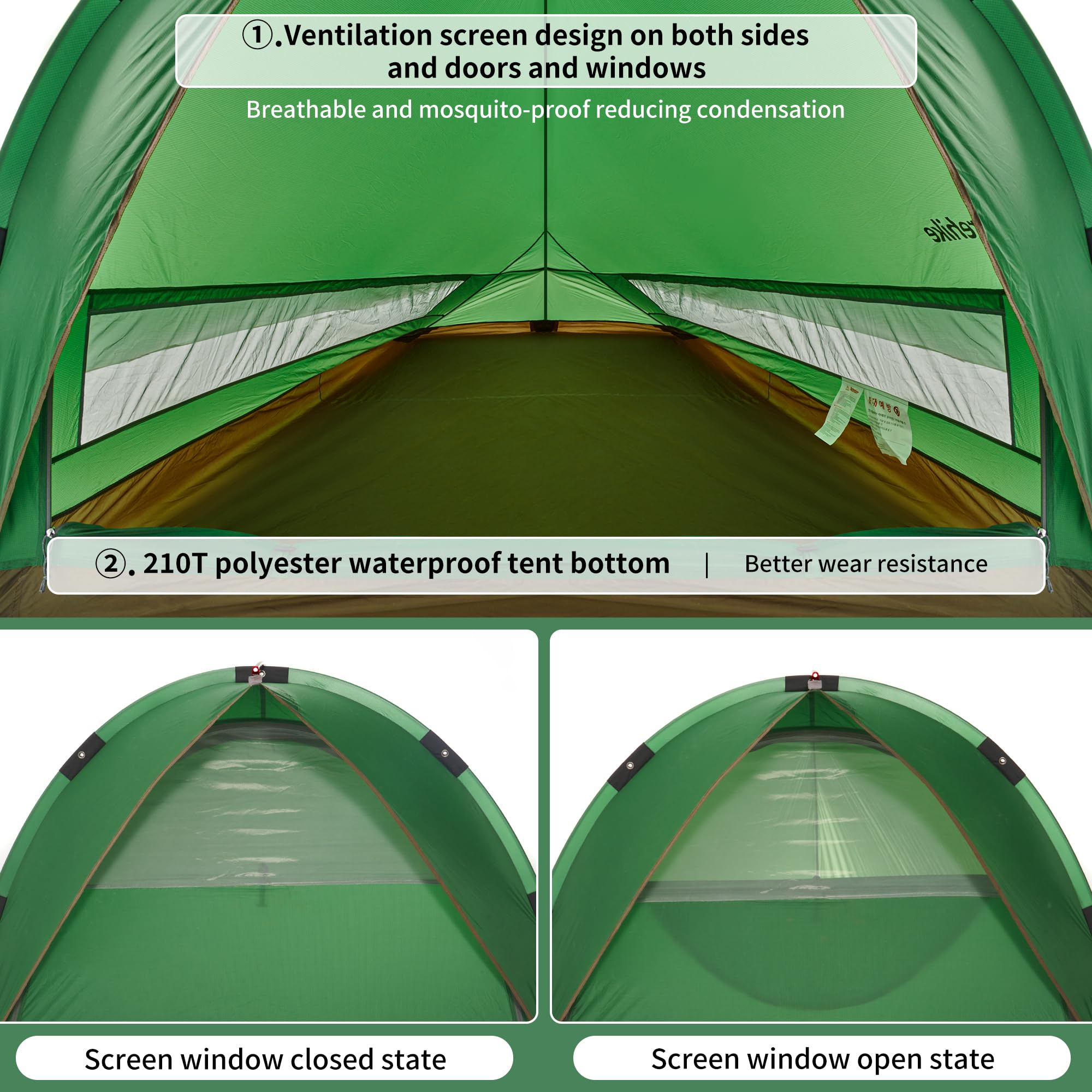 Wow, dieses Naturehike Zelt ist der absolute Traum für Outdoor-Fans! Ein Doppelschicht-Zelt für 2 Personen, das nur etwa 1,74kg wiegt - super leicht also für Rucksacktouren. Die obere Stange ist aus 9,5mm starkem Material, total stabil und das Dach drückt nicht rein. Drinnen ist richtig viel Platz: 150x260x110cm - da passen zwei Leute bequem rein mit ihrem Gepäck. Das Außenzelt ist aus 20D silikonbeschichtetem Nylon - mega leicht UND wasserdicht mit nem Index von 4000mm. Der Boden hält mit 3000mm auch starkem Regen stand. Die Stangen sind aus 7001 Alu-Legierung - die halten auch nem Sturm stand. Und gegen Mücken bist du auch safe: Lüftungsgitter auf beiden Seiten und belüftete Türen/Fenster sorgen für frische Luft, halten aber Insekten draußen. Kondenswasser? Wird effektiv abgeleitet. Verpackt ist das Zelt super kompakt in nem 50x15cm Storage - passt in jeden Rucksack. Der Tragegurt ist praktisch für unterwegs. Ob Trekking, Camping oder Festival - damit bist du für alles gewappnet. Einfach aufbauen, reinlegen und die Natur genießen - sicher und gemütlich!