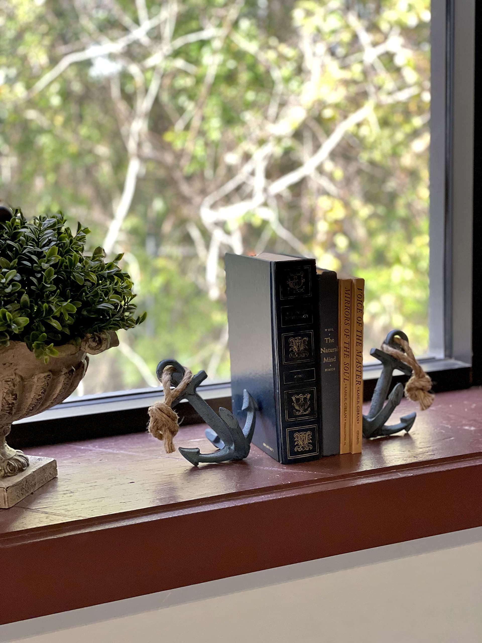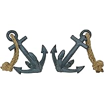 Bring maritimes Flair in dein Zuhause! Diese wunderschönen Buchstützen in Anker- und Schiffsrad-Design sind ein echter Hingucker! Aus robustem Gusseisen gefertigt und in Antikblau lackiert - total edel! Anker: 13,3x7,6x13,3cm, Schiffsrad: 11,4x7,6x11,4cm - perfekt für jedes Bücherregal! Stabilisieren deine Büchersammlung zuverlässig vor dem Umfallen! Auch super als Papiergewicht oder dekoratives Element! Passt zu maritimem, landhaus oder modernem Einrichtungsstil! Einfach ins Regal stellen und sich am nautischen Charme erfreuen! Perfekt fürs Wohnzimmer, Büro oder als Geschenk für Seefahrer-Fans!