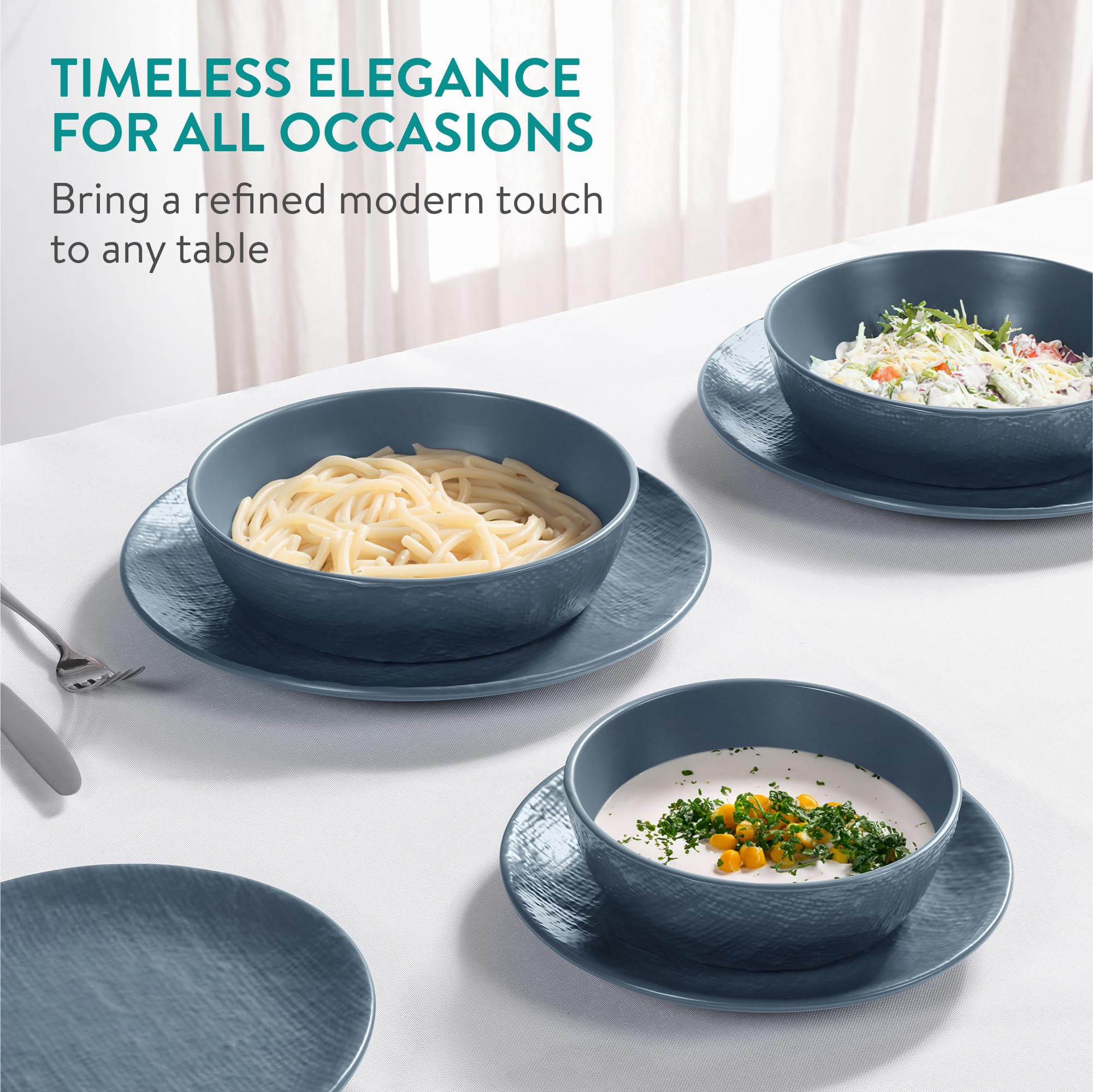 • Navaris Steingut Geschirrset Für 2 Personen: 8-teiliges Service In Anthrazit