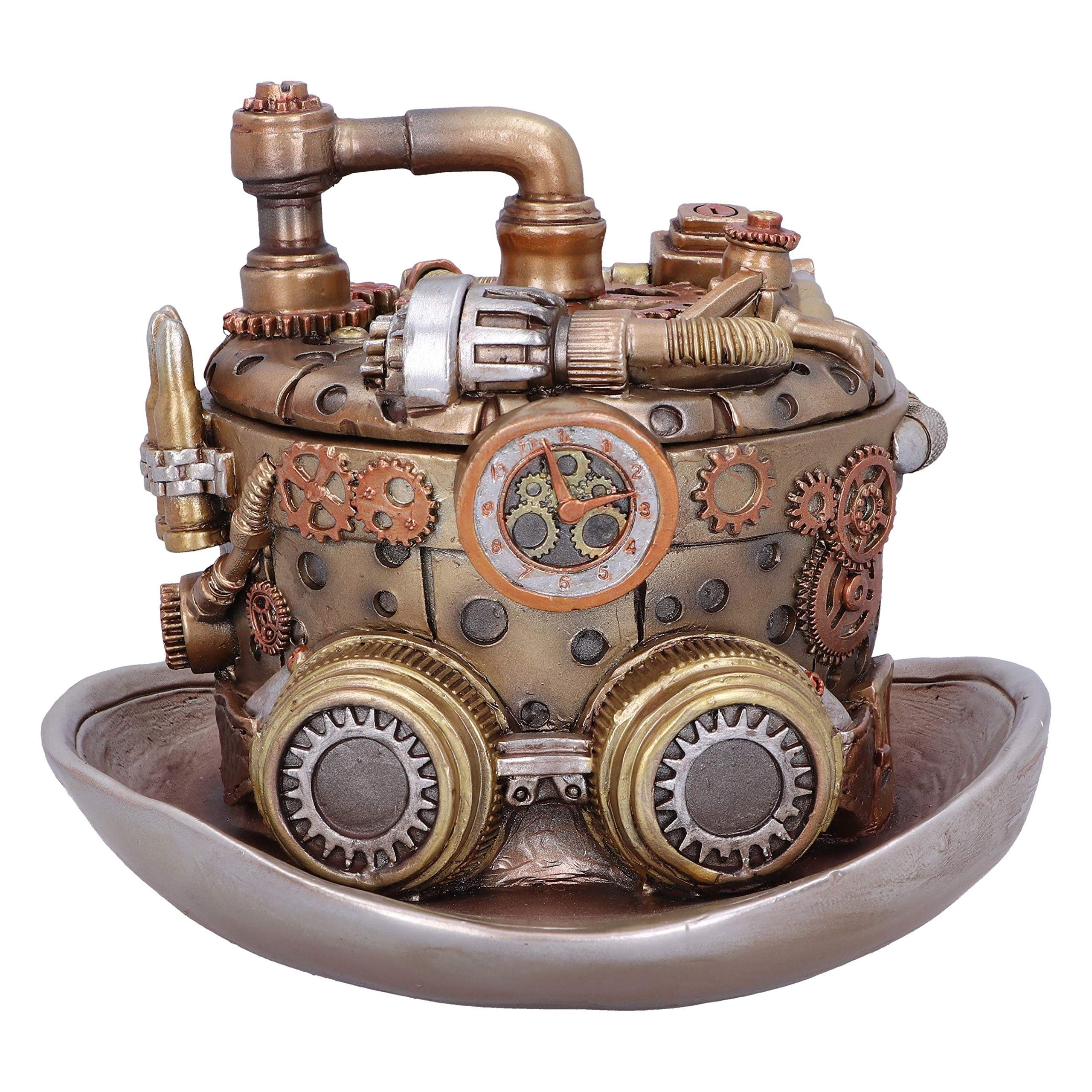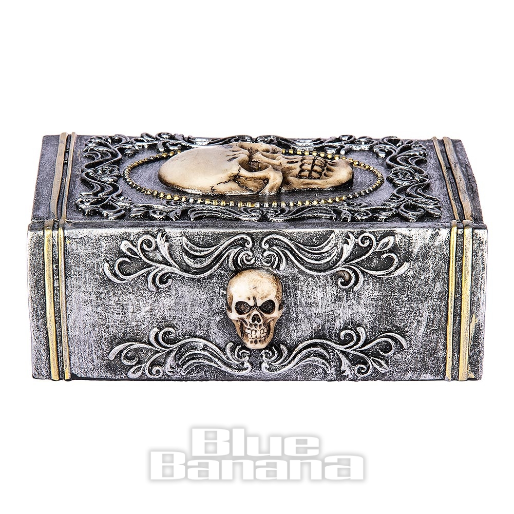 Mystisch und geheimnisvoll! Diese Grimoire Schatzkiste von Nemesis Now sieht aus wie ein antikes Buch, verbirgt aber ein verstecktes Fach für deine Schätze. Aus feinstem Harz handgefertigt und bemalt, mit grauer Oberfläche und goldenen Details. Der Totenkopf in der Mitte verleiht ihr eine geheimnisvolle Aura. Mit 11cm Größe perfekt für Schmuck, Münzen oder andere kleine Wertgegenstände. Ein absoluter Hingucker für jede Gothic- oder Horror-Sammlung. Als besonderes Geschenk für Fans des Makabren oder als stylische Aufbewahrungslösung. Hebe den Deckel an und bewahre deine Geheimnisse sicher auf - in diesem einzigartigen Kunstwerk!