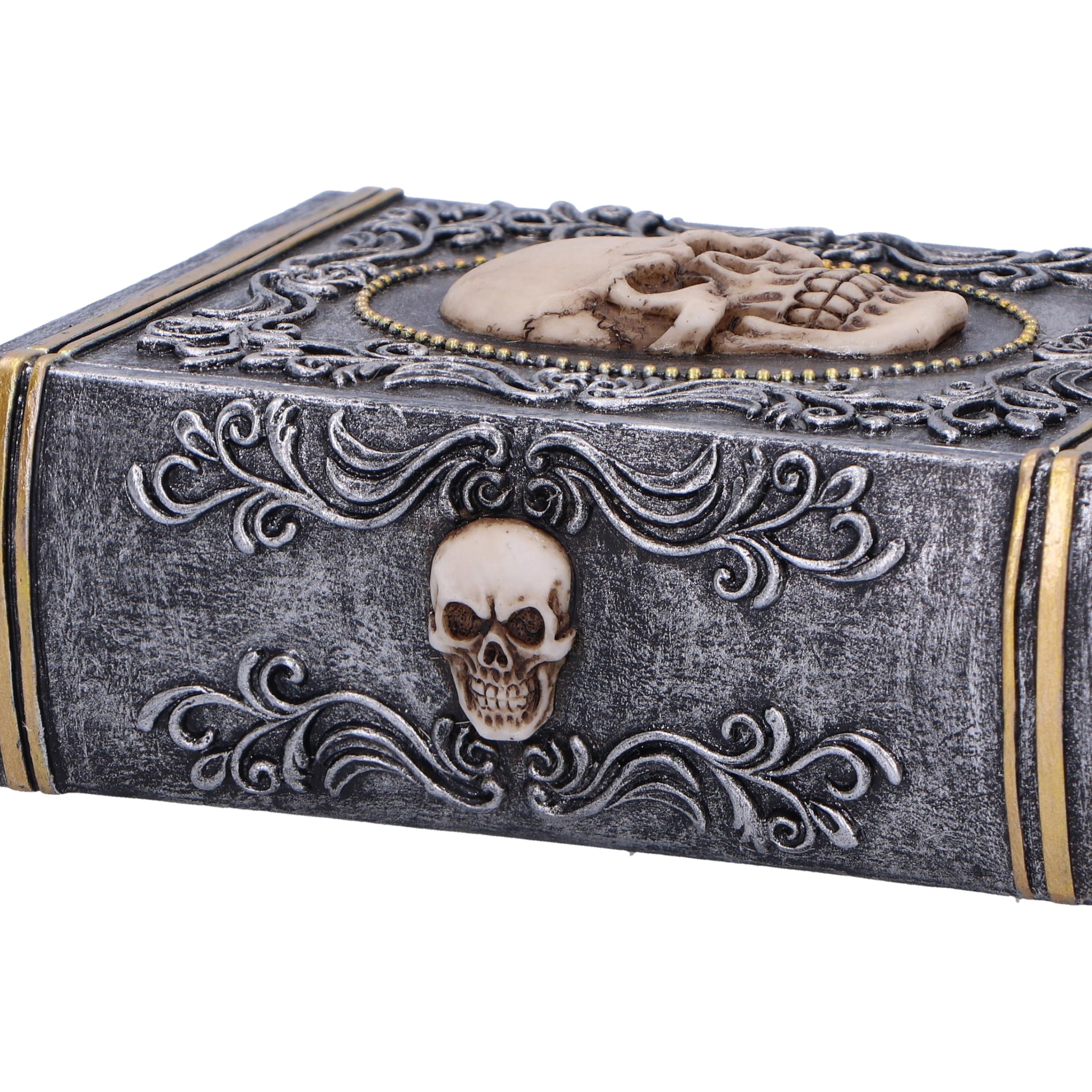 • Nemesis Now Grimoire Schatzkiste - 11cm Totenkopf-Buch Aus Harz