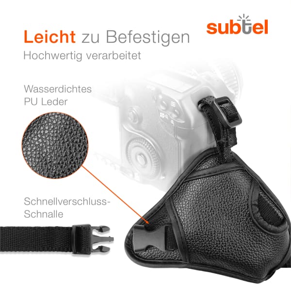 Sichere deine wertvolle Kamera mit dieser komfortablen Handschlaufe von SUNNIFLY! Aus weichem Neopren und veganem Leder gefertigt, liegt sie angenehm am Handgelenk. Der Schnellverschluss ermöglicht einfaches An- und Abnehmen in Sekunden. Bis zu 5kg Tragkraft - perfekt für DSLR-Kameras von Canon, Nikon, Sony und anderen Marken. Die elastische Neopren-Schlaufe passt sich jedem Handgelenk bis 22cm an. Viel bequemer als ein Schultergurt - verursacht keine Nacken- oder Schulerschmerzen. Schützt deine Kamera vor versehentlichem Fallenlassen. Ideal für Outdoor-Fotografie, Events oder Reisen. Ob Profi oder Hobbyfotograf - mit dieser Handschlaufe hast du deine Kamera immer sicher im Griff und bist ready für den perfekten Shot!