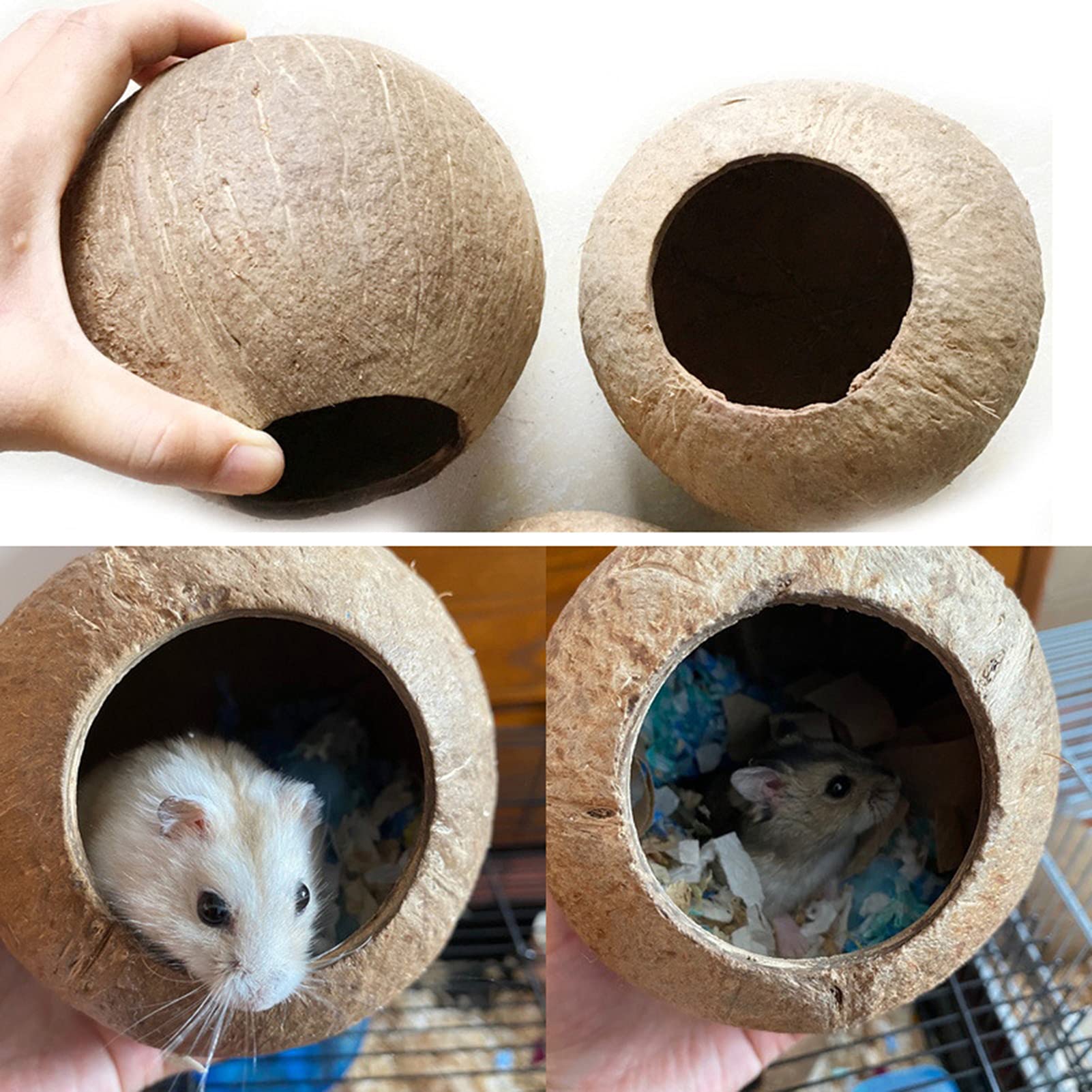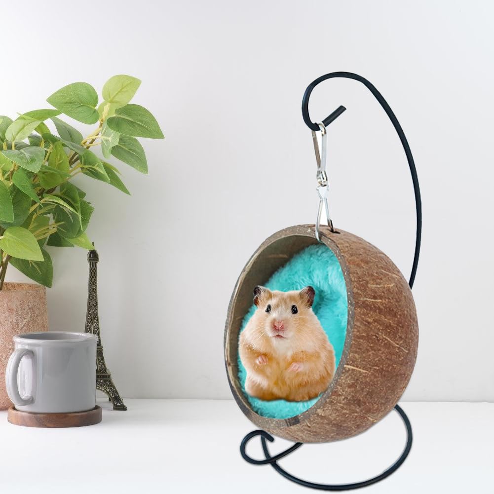Wie süß ist denn dieses Kokosnussschalen-Nest von HANABASS? Deine kleinen Lieblinge werden es lieben! Aus natürlicher Kokosnussschale gefertigt - komplett ökologisch und absolut unbedenklich für deine Tiere. Mit den Maßen 30x12cm bietet es genug Platz zum Kuscheln, Schlafen und Spielen. Perfekt für Hamster, Meerschweinchen, Vögel und andere Kleintiere. Das hängende Design mit praktischem Seil macht die Aufhängung super einfach - einfach im Käfig oder Gehege befestigen und schon haben deine Tiere ihr eigenes gemütliches Reich! Die wunderbare Verarbeitung sorgt für gute Haltbarkeit - das Nest hält auch bei lebhaften Tieren lange. Kompakte Größe, nimmt nicht zu viel Platz weg. Deine Tiere fühlen sich darin geborgen und sicher - wie in der Natur! Perfekte Schlaf- und Spielgelegenheit für alle kleinen Nager und Vögel. Einfach zu reinigen und absolut naturbelassen. Gib deinen Tieren das besondere Extra an Komfort - sie werden es dir danken!