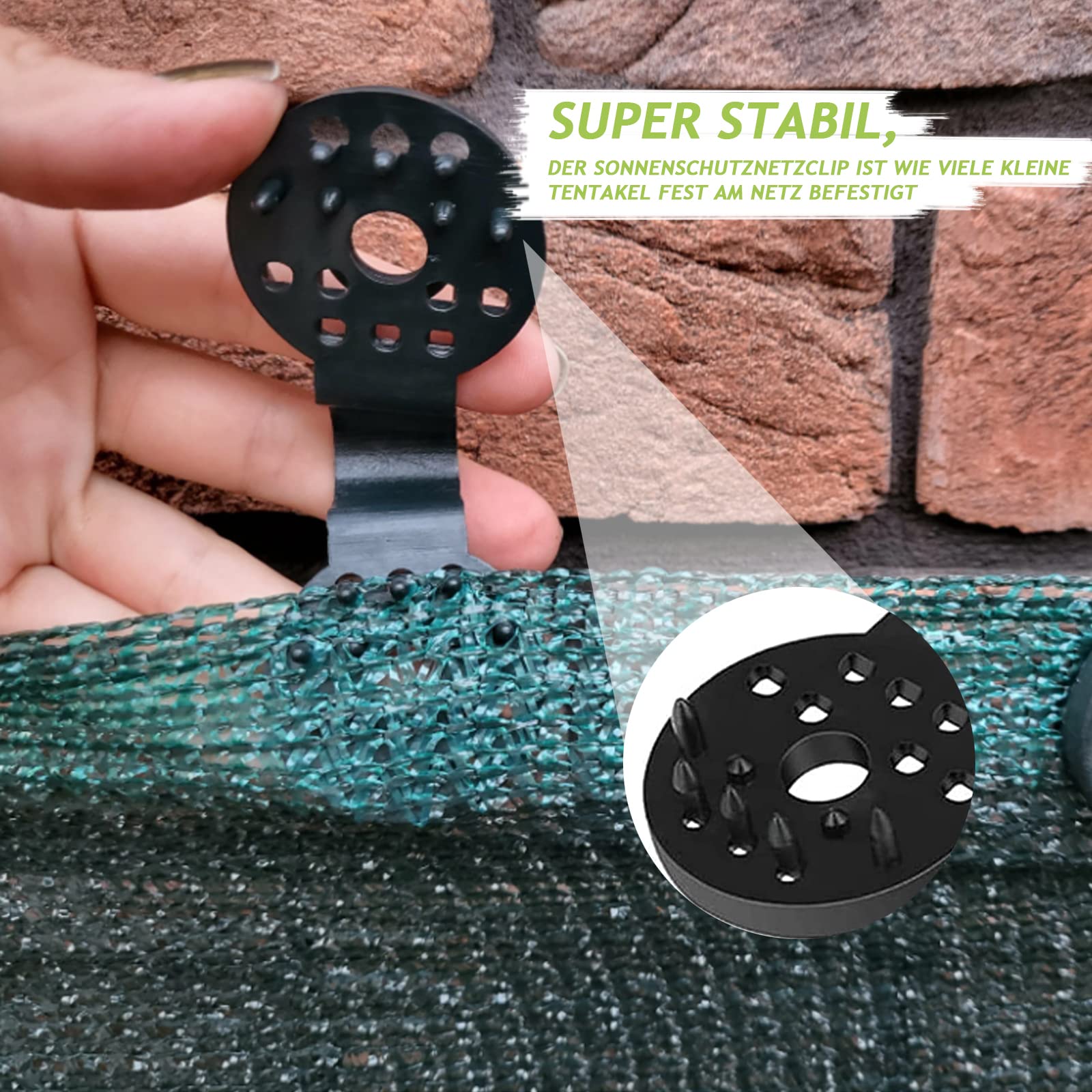 Endlich dein Schattennetz sicher befestigen! Diese 50 Netzclips aus robustem Kunststoff machen das Anbringen von Schattennetzen zum Kinderspiel. Mit ca. 3,4x3,0x0,3cm Größe sind sie klein, aber oho! Perfekt für Gewächshäuser, aber auch für Balkon, Terrasse oder Garten. Einfach das Netz einhaken und festklicken - schon ist alles sicher befestigt. Die vielen Clips reichen für größere Flächen aus, und die Wiederverwendbarkeit spart Zeit und Geld. Leicht und dennoch stabil - genau was du brauchst, um deine Pflanzen vor zu viel Sonne zu schützen. Ob für professionelle Gewächshäuser oder den Hobby-Garten - diese Clips erledigen ihren Job zuverlässig. Einfache Handhabung, gute Befestigungswirkung und langlebige Qualität. Organisiere deinen Garten effizient und mach die Pflege leichter! Praktisch, vielseitig und absolut nützlich - ein Muss für jeden Gartenbesitzer!