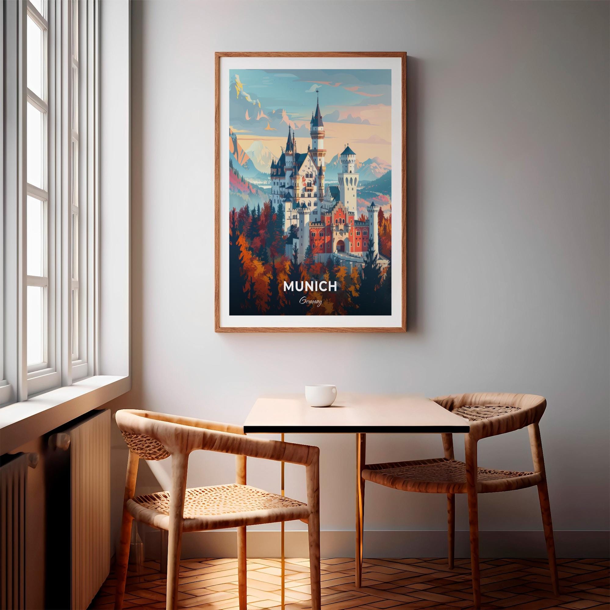 Das berühmte Schloss Neuschwanstein in Bayern jetzt als wunderschönes Vintage-Poster für deine Wohnung! Dieser Kunstdruck im Format 20 x 30 cm zeigt das Märchenschloss in romantischer Atmosphäre mit Bäumen im Vordergrund. Gedruckt auf hochwertiger Leinwand mit wasserdichter Laminierung, UV-beständigen und lichtechten Tinten - so bleibt das Bild lange Zeit frisch und farbintensiv. Die Oberfläche fühlt sich glatt an und die Grafiken sind gestochen scharf. Perfekt für Wohnzimmer, Schlafzimmer, Flur oder Büro - überall dort, wo du ein bisschen bayerisches Flair reinbringen möchtest. Du kannst zwischen verschiedenen Rahmenoptionen wählen oder es ohne Rahmen bestellen. Keine Sorge - auf dem gelieferten Produkt sind keine Wasserzeichen, obwohl in den Produktbildern welche zu sehen sind (das dient nur dem Urheberrechtsschutz). Die Hersteller legen großen Wert auf Qualität und jedes Stück wird von echten Menschen inspiziert und mit Sorgfalt verpackt. Ein tolles Geschenk für Bayern-Fans oder alle, die sich nach Urlaub sehnen!