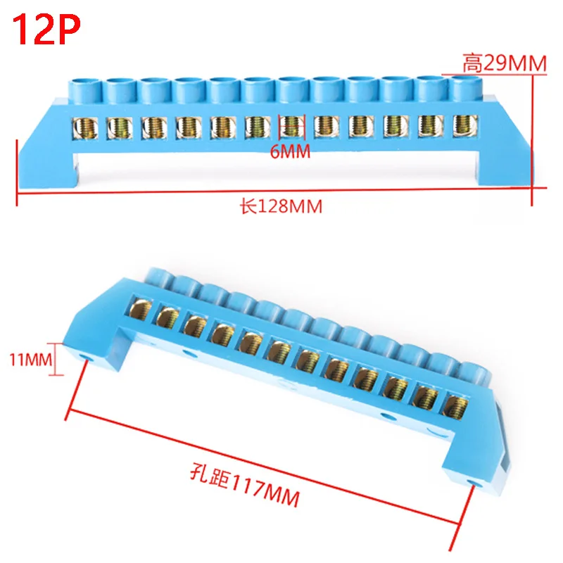 Wenn du elektrische Installationen machst, kennst du das Problem: Irgendwann braucht man eine gute Klemmleiste für die Neutral- oder Erdungsleitungen. Diese hier ist genau das Richtige! Mit 12 Positionen hast du genug Platz für alle Anschlüsse, und das bei bester Qualität.\\n\\nDas Gehäuse ist aus robustem Kunststoff in Blau (für Neutralleiter) - so behältst du immer den Überblick. Die Klemmen innen sind aus hochwertigem Messing, das sorgt für perfekte Leitfähigkeit und ist korrosionsbeständig. Selbst bei hohen Temperaturen verformt sich nichts - absolute Sicherheit also!\\n\\nDas geniale Brücken-Design macht die Verkabelung super einfach: Die Löcher sind optimal angeordnet mit 6,5 mm Durchmesser, da bekommst du jede Schraube easy rein. Und wenn die Drähte einmal fest sitzen, halten sie auch - keine Sorge vor Vibrationen oder lockeren Kontakten!\\n\\nEinsatzgebiete? So ziemlich überall! Ob im PZ30-Verteilerkasten, in Schaltschränken, Beleuchtungsanlagen - wo auch immer du Neutral- oder Erdungsleitungen bündeln musst. Die Klemmleiste ist dein bester Freund.\\n\\nAlso, wenn du Wert auf sichere, saubere und professionelle Elektroinstallation legst - hier ist deine Lösung. Einfach montieren, verdrahten und freuen über eine Arbeit, die hält was sie verspricht!