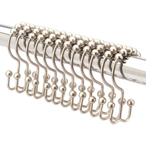 Endlich Ordnung in der Dusche! Diese 12 Duschvorhanghaken in edlem Nickel-Look machen dein Badezimmer sofort stylischer. Aus 100% rostfreiem Edelstahl - halten ewig und sehen immer gut aus. Das coole Doppelhaken-Design: Du kannst gleichzeitig Duschvorhang und Innenliner aufhängen. Die 5 kugelförmigen Kugeln sorgen für super gleitfähigkeit - kein Hängenbleiben mehr! Passen auf alle gängigen Vorhangstangen. Einfach zu montieren - in wenigen Minuten ist alles fertig. Schlichtes, elegantes Design das zu jedem Badezimmer-Stil passt. Damit wird der lästige Vorhangwechsel zum Kinderspiel. Einfach aufhängen und sich über eine aufgeräumte Dusche freuen!