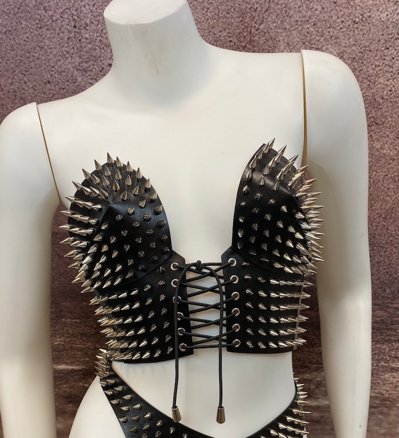 Dieser auffällige Spiked Bra in Silber ist der absolute Hingucker für jede Party! Mit den coolen Nieten und Stacheln im Punk-Rock Style ziehst du garantiert alle Blicke auf dich. Die verstellbaren Träger sorgen für perfekten Sitz und maximalen Komfort - ob du die ganze Nacht tanzst oder feierst. Aus hochwertigem Polyester gefertigt, sind die Nieten sicher befestigt und fallen nicht ab. Perfekt für Clubnächte, Tanzauftritte, Karneval oder Mottopartys. In Größe M erhältlich, in Silber und Schwarz. Einfach anziehen und die Bühne rocken - mit diesem BH machst du garantiert eine starke Statement!