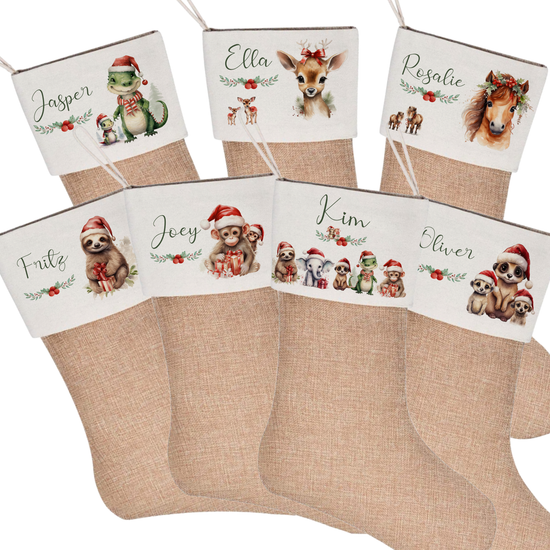 Die perfekte Überraschung für dein Kind! Dieser personalisierte Nikolausstrumpf wird mit dem Namen deines Kindes bedruckt und ist damit ein ganz besonderes Geschenk. Aus natürlicher Jute und groß genug für viele kleine Überraschungen. \\n\\n• Wird mit Wunschnamen personalisiert - einzigartig \\n• Aus 100% Polyester Jute - natürliches Material \\n• 45 cm lang - viel Platz für Geschenke \\n• Öffnung 19 cm - leicht zu befüllen \\n• Mit Aufhängebändel - praktisch für Kamin oder Tür \\n• Jedes Jahr wiederverwendbar - nachhaltig \\n\\nOb für Nikolaus oder Weihnachten - dieser personalisierte Strumpf wird zur lieb gewonnen Tradition. Dein Kind wird sich freuen, seinen eigenen Namen darauf zu sehen und kann es kaum erwarten, zu sehen was drin ist. Einfach Namen auswählen und die Vorfreude beginnt!