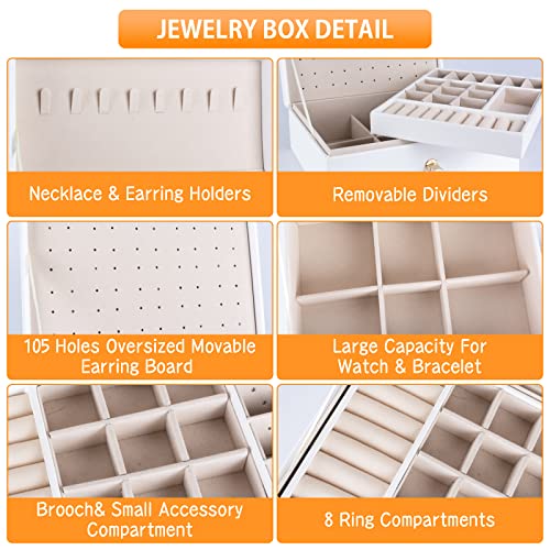 Mit zwei gleitenden Schubladen und den Maßen 23×17×10CM findest du hier Platz für alles: 36 Ohrringe, 15 Ringe, 8 Ketten, 6 Armbänder und noch mehr. Die herausnehmbaren Trennwände kannst du ganz nach deinen Bedürfnissen anpassen.
