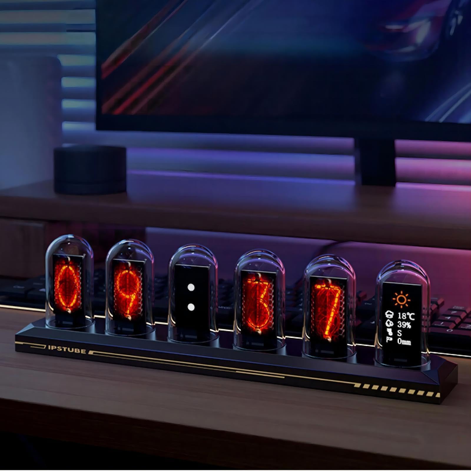 Retro-Charme meets moderne Technik! Diese Nixie Röhrenuhr mit IPS-Farbdisplay ist ein echter Blickfang für deinen Schreibtisch. Im silbernen Design mit Glasrohr sieht sie einfach klasse aus und bringt vintage Flair in dein Zuhause!