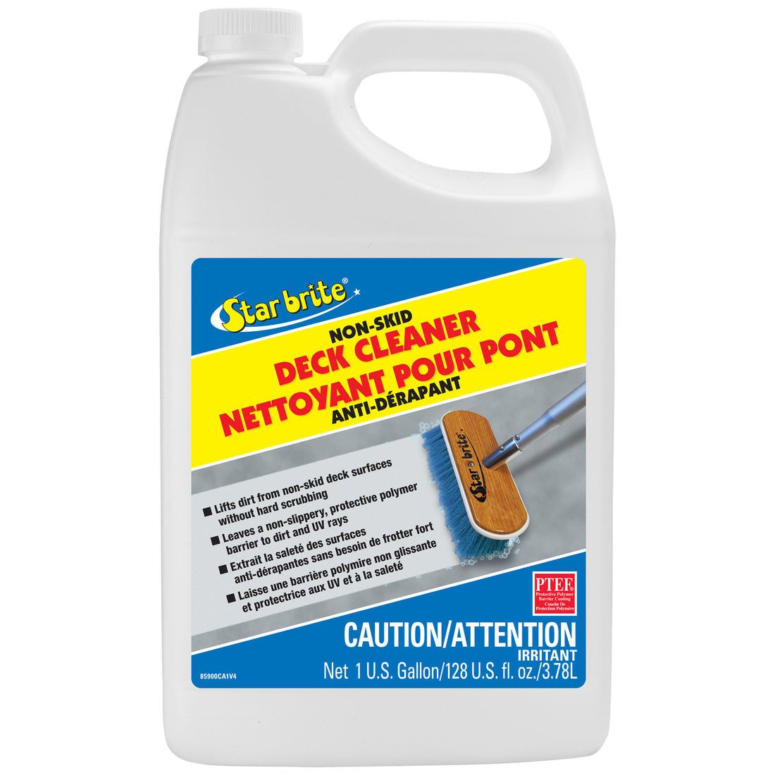 Schluss mit mühsamem Schrubben auf deinem Boot! Der Star brite Non-Skid Deck Cleaner mit PTEF-Technologie macht die Reinigung deiner Bootsoberflächen zum Kinderspiel. Einfach das Deck anfeuchten, den Reiniger auftragen, leicht schrubben und abspülen - schon strahlt dein Boot wie neu! Die spezielle Formel entfernt nicht nur hartnäckige Flecken, sondern hinterlässt auch eine unsichtbare Schutzschicht, die zukünftigen Schmutz abweist und vor schädlicher UV-Strahlung schützt. Besonders praktisch: Der Reiniger ist sicher für alle Oberflächen - ob Fiberglas, Vinyl, Gummi, Kunststoff, Metall oder lackierte Flächen. Auch für Composite- und Trex-Decks an Land bestens geeignet. Die 1 Gallon (3,78 Liter) Packung reicht für viele Anwendungen und ist damit äußerst wirtschaftlich. Profi-Qualität für Heimwerker - mit diesem Reiniger hältst du dein Boot und andere Oberflächen mühelos sauber und geschützt. Ein unverzichtbarer Helfer für jeden Bootsbesitzer!