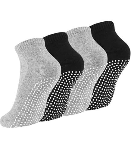 Endlich sicher stehen bei Yoga und Pilates! Diese Anti-Rutsch-Socken von Skyba geben dir den perfekten Halt auf jeder Matte. Mit hunderten Silikon-Noppen an der Sohle rutscht nichts mehr - ob bei der Barre, im Yoga oder beim Workout. Aus weichem Polyester-Mix gefertigt, sind sie atmungsaktiv und trocknen schnell. Die gepolsterte Sohle sorgt für extra Komfort, der Fersenriegel verhindert das Verrutschen im Schuh. In drei verschiedenen Größen erhältlich - keine Einheitsgröße mehr! Perfekt auch für Schwangere oder als gemütliche Hausschuhe. Nach dem Training einfach in die Maschine waschen - die Noppen bleiben auch nach vielen Wäschen haftend. Mit 2 Paar im Pack sparst du gleich doppelt. Mach dein Training sicherer und angenehmer!