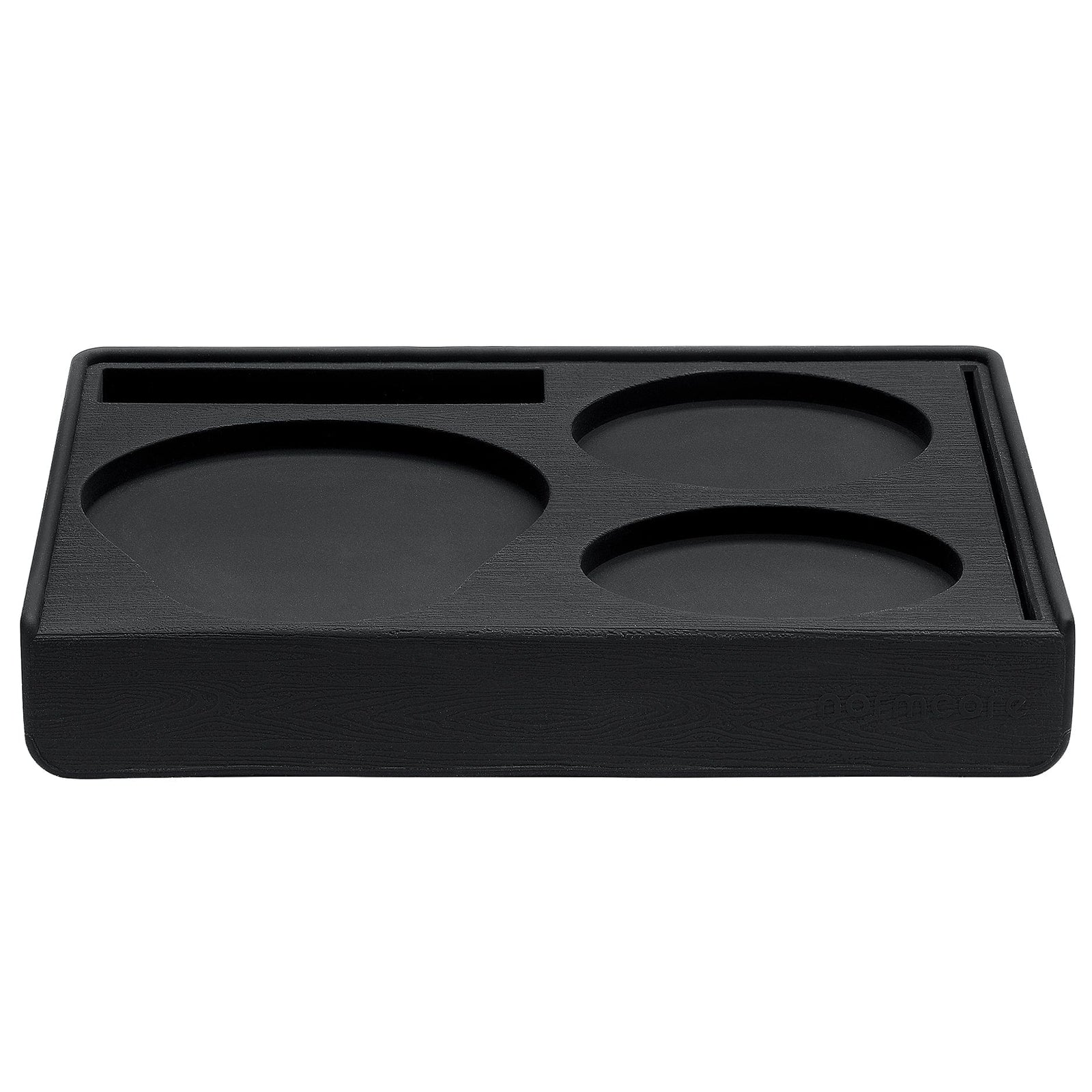 Platzmangel auf deiner Küchenarbeitsfläche? Die Normcore Espresso-Stopfstation bringt Ordnung in deine Kaffee-Ecke! Dieses stylische Teil aus massivem amerikanischen Eschenholz hält all deine Werkzeuge griffbereit.\n\nProduktfeatures:\n• Material: Massives schwarzes Eschenholz, geölt\n• Abmessungen: 170 x 150 x 27,5 mm\n• Kompatibel mit 58mm Siebträgern (auch für 51/54mm)\n• Mehrere Werkzeugschlitze für alles, was du brauchst\n\nWas passt alles drauf?\n• Tamper (Stampfer)\n• Verteilerwerkzeuge\n• WDT-Werkzeuge\n• Puck-Siebe\n• Reinigungsbürsten\n• Dosiertrichter\n\nDie verstellbaren Muttern ermöglichen dir, die Höhe individuell anzupassen - so passen auch verschiedene Griffgrößen perfekt.\n\nDas Holz ist nachhaltig bezogen und mit einer schwarzen Beize behandelt, die die natürliche Maserung betont. Sieht nicht nur gut aus, sondern ist auch super funktional.\n\nOb für zuhause oder im Café - diese Station macht deine Kaffeezubereitung organisiert und effizient. Endlich Schluss mit dem Suchen nach verlegten Werkzeugen!
