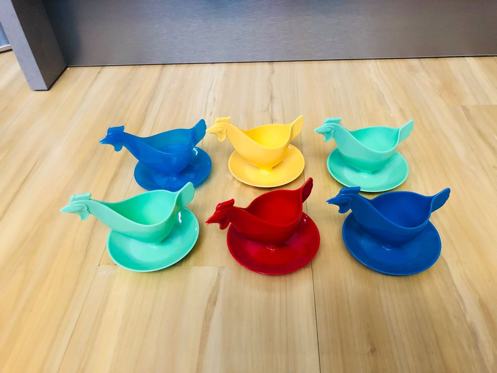 Ach ja, die guten alten DDR-Zeiten! Dieser Hühner-Eierbecher weckt sofort Kindheitserinnerungen. Aus robustem Kunststoff gefertigt, geht er nicht so schnell kaputt wie Porzellan - super praktisch für den Alltag. Der Clou: Unten ist eine Auffangschale für die Eierschalen integriert - kein lästiges Herumkruschteln mehr! Der Fuß steht bombenfest, dein Ei kippt nicht um. Perfekt für das 6-Minuten-Ei am Sonntagmorgen, aber natürlich auch für weiche oder harte Eier. In verschiedenen Farben erhältlich - da findet jeder seinen Favoriten. Reinigen ist super einfach: Einfach unter fließendem Wasser abspülen oder in die Spülmaschine stellen. Ein tolles Geschenk für Ostalgie-Fans, zu Ostern oder einfach als lustige Deko für die Küche. Auch in modernen Einrichtungen ein echter Hingucker - das Gesprächsthema am Frühstückstisch ist garantiert! Einfach Ei rein, löffeln und genießen - so macht Frühstücken richtig Spaß!