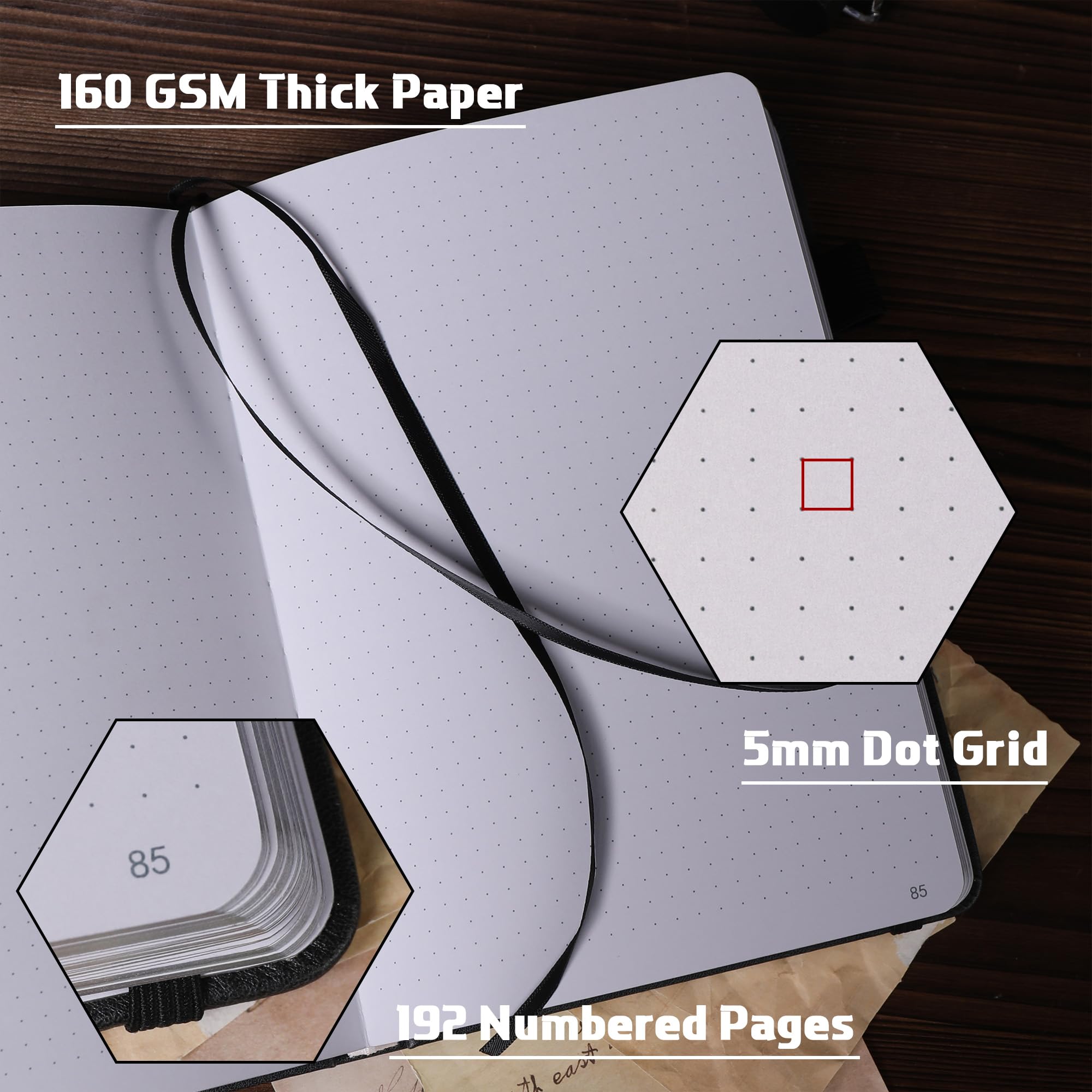 Wow, dieses TIEFOSSI Bullet Journal ist einfach nur traumhaft! Das quadratische Design (20,4x20,4cm) mit dem edlen PU-Leder-Einband und den lasergravierten Goldmotiven sieht einfach premium aus. Drinnen erwarten dich 160 nummerierte Seiten mit feinem 5mm Punkt-Raster - perfekt für Bullet Journaling, Skizzen oder Planungen! Das 160 GSM Papier ist so dick, dass nichts durchscheint - egal ob du mit Filzstiften, Tinte oder Wasserfarben arbeitest. Der Goldrand auf jeder Seite gibt dem ganzen noch mal diesen extra Luxus-Touch. Praktisches Zubehör inklusive: Gummiband zum Schließen, zwei Lesebänder, eine Innentasche für Fotos oder Zettel und sogar ein Stifthalter! Ob als Geschenk für kreative Freunde oder als neues Lieblings-Notizbuch für dich selbst - in der hübschen Geschenkverpackung macht es immer was her. Endlich ein Journal, das sowohl gut aussieht als auch super funktional ist!