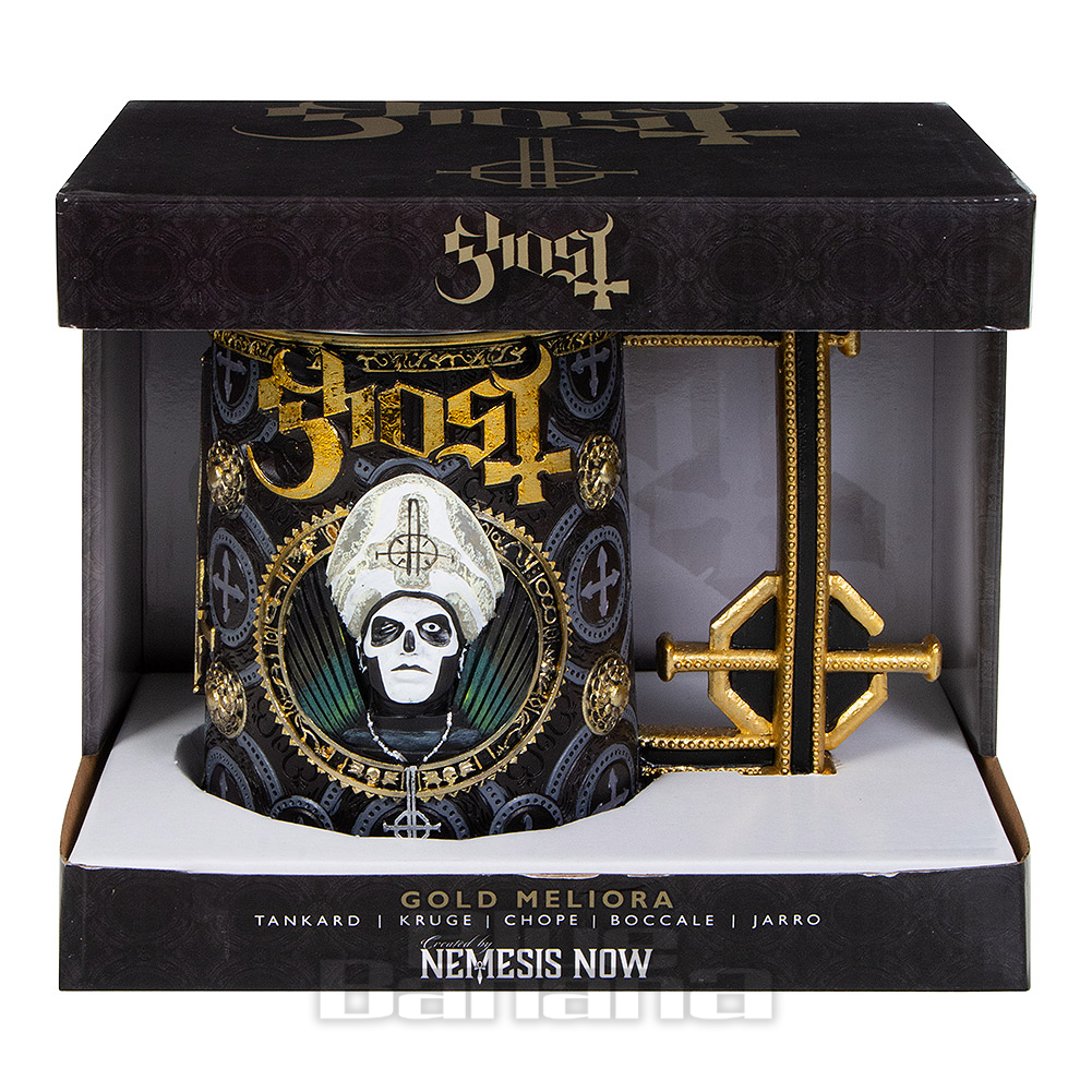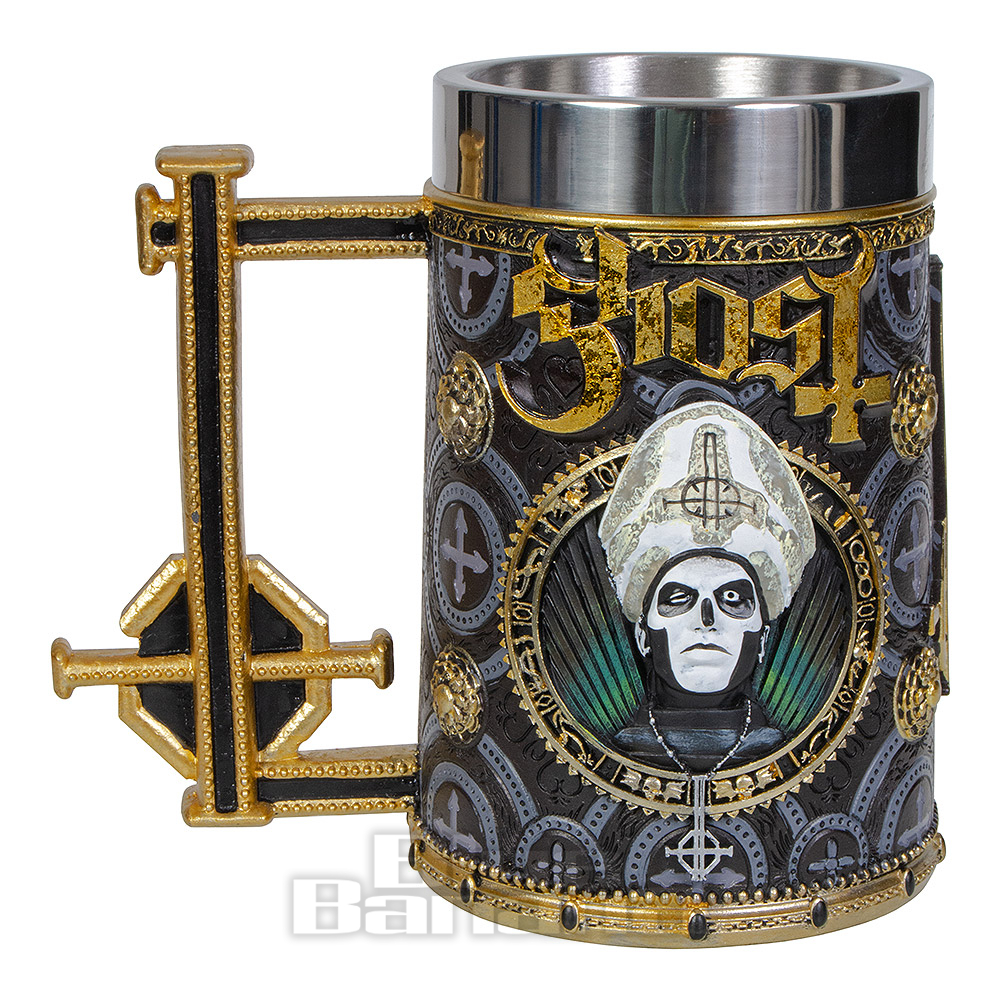 Für alle Ghost-Fans: Der offizielle Papa Emeritus Evolution Bierkrug! Aus feinstem Harz handbemalt - ein absolutes Must-Have für jede Sammlung. \\n\\nProdukt-Highlights:\\n• Offiziell lizenziertes Ghost-Merchandise\\n• Meisterhaft detailliert\\n• Handbemalt\\n• Herausnehmbarer Edelstahleinsatz\\n• Einfach zu reinigen\\n\\nMaße: 15,5 cm hoch\\n\\nPerfekt für:\\n• Ghost-Konzerte\\n• Sammlungen\\n• Als Dekoration\\n• Fan-Geschenke\\n• Oder natürlich zum Trinken!\\n\\nDer Krug zeigt die ikonischen Figuren Papa Emeritus und Cardinal Copia in bester Qualität. Ein echter Hingucker in jeder Vitrine oder auf jeder Home-Bar! \\n\\nAchtung: Dies ist kein gewöhnlicher Bierkrug, sondern ein hochwertiges Sammlerstück, das die mystische Atmosphäre der Band perfekt einfängt. Einfach umwerfend für jeden True Ghost Fan!