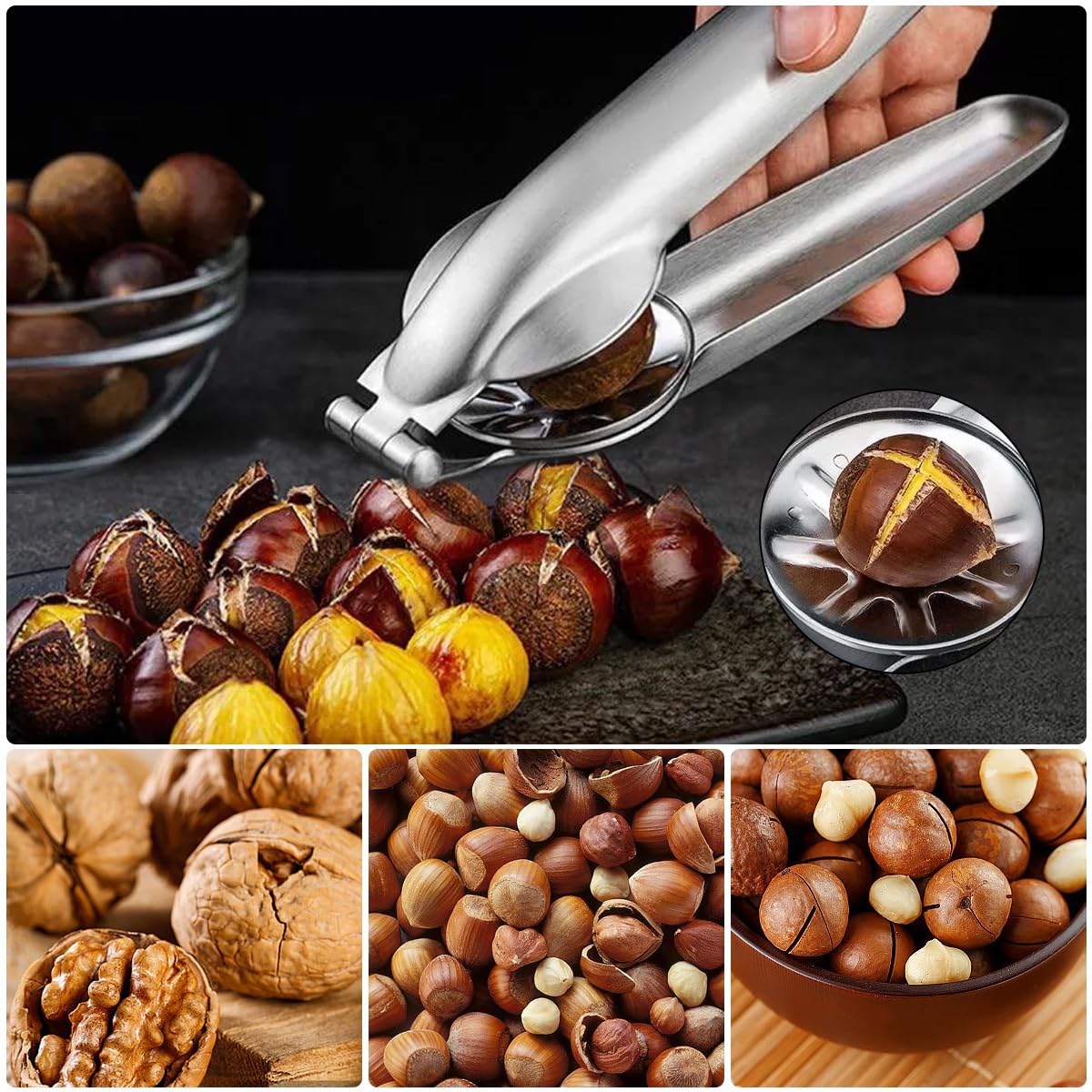 Mit drei verschiedenen Aussparungen knackt er problemlos Walnüsse, Haselnüsse, Mandeln, Pekannüsse und sogar Pistazien. Die Hebelwirkung macht's möglich - kaum Kraftaufwand nötig!