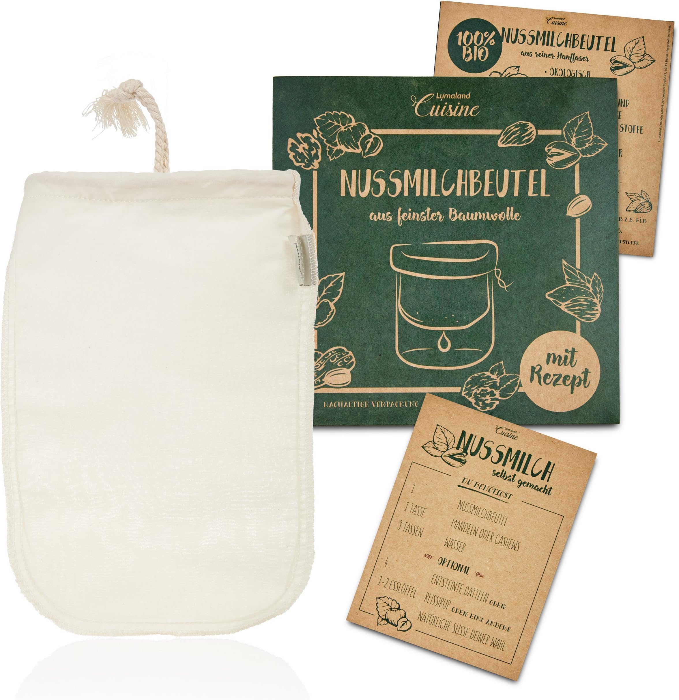 Perfekt für selbstgemachte Nussmilch und Säfte! Diese 4 Baumwoll-Siebbeutel mit praktischem Reißverschluss machen das Filtern super einfach. Mit dabei: Ein Edelstahlring zum Aufspannen der Beutel - kein Gefummel mehr! Die feinen Maschen halten selbst kleinste Partikel zurück, während die Flüssigkeit klar durchläuft. Ideal für Mandelmilch, Haselnussmilch, Sojamilch, Kaffee, Fruchtsäfte und sogar für traditionelle Medizin. Aus schnell trocknender Baumwolle - verhindert Schimmelbildung und ist damit hygienischer als Plastikvarianten. Wiederverwendbar und umweltfreundlich - spart Geld und Müll. Einfach nach Gebrauch mit Wasser ausspülen und trocknen lassen. Jeder Beutel ca. 25x22 cm groß - genug Kapazität für alle deine Filter-Projekte. Mach deine eigenen gesunden Getränke ohne lästige Rückstände!