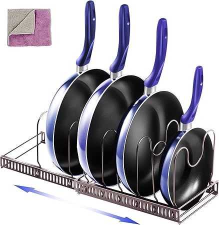 Schluss mit dem Chaos in der Küchenschublade! Dieser nutmanel Topfdeckel-Organizer bringt Ordnung in deine Küche. Der ausziehbare Organizer lässt sich von 30,5 bis 56 cm verstellen und passt so in fast jede Schublade. Mit 10 verstellbaren Trennwänden kannst du die Fächer individuell an deine Topfdeckel, Backschalen und Küchenutensilien anpassen. Aus hochwertigem ABS-Material und Edelstahl - lebensmittelecht, robust und leicht zu reinigen. Der Anti-Rutsch-Effekt verhindert das Verrutschen, und die ausgehöhlte Bodenkonstruktion sorgt für gute Belüftung. Einfache Montage ohne Werkzeuge - einfach die Halterungen aufstecken und schon kann's losgehen. Perfekt für Privathaushalte, Büroküchen oder Hotels. Endlich Ordnung in der Küche!