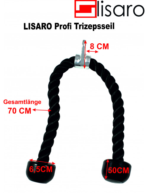 Perfekt für dein Arm- und Oberkörpertraining! Das Trizepsseil ist 70 cm lang, aus robustem Nylon und hat einen Edelstahl-Karabiner. Damit trainierst du nicht nur Trizeps, sondern auch Rücken, Schultern und Griffkraft. Passt an jeden Kabelturm oder Flaschenzug im Gym. Einfach einhaken und loslegen – kein extra Zubehör nötig. Das Seil ist verschleißfest und rutscht nicht. Ob für Anfänger oder Profis – mit diesem Seil machst du dein Workout effektiver und abwechslungsreicher.