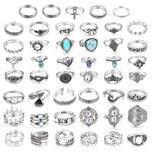 • OATIPHO Vintage Ring Set 10-teilig - Boho Knuckle Ringe Mit Steinen