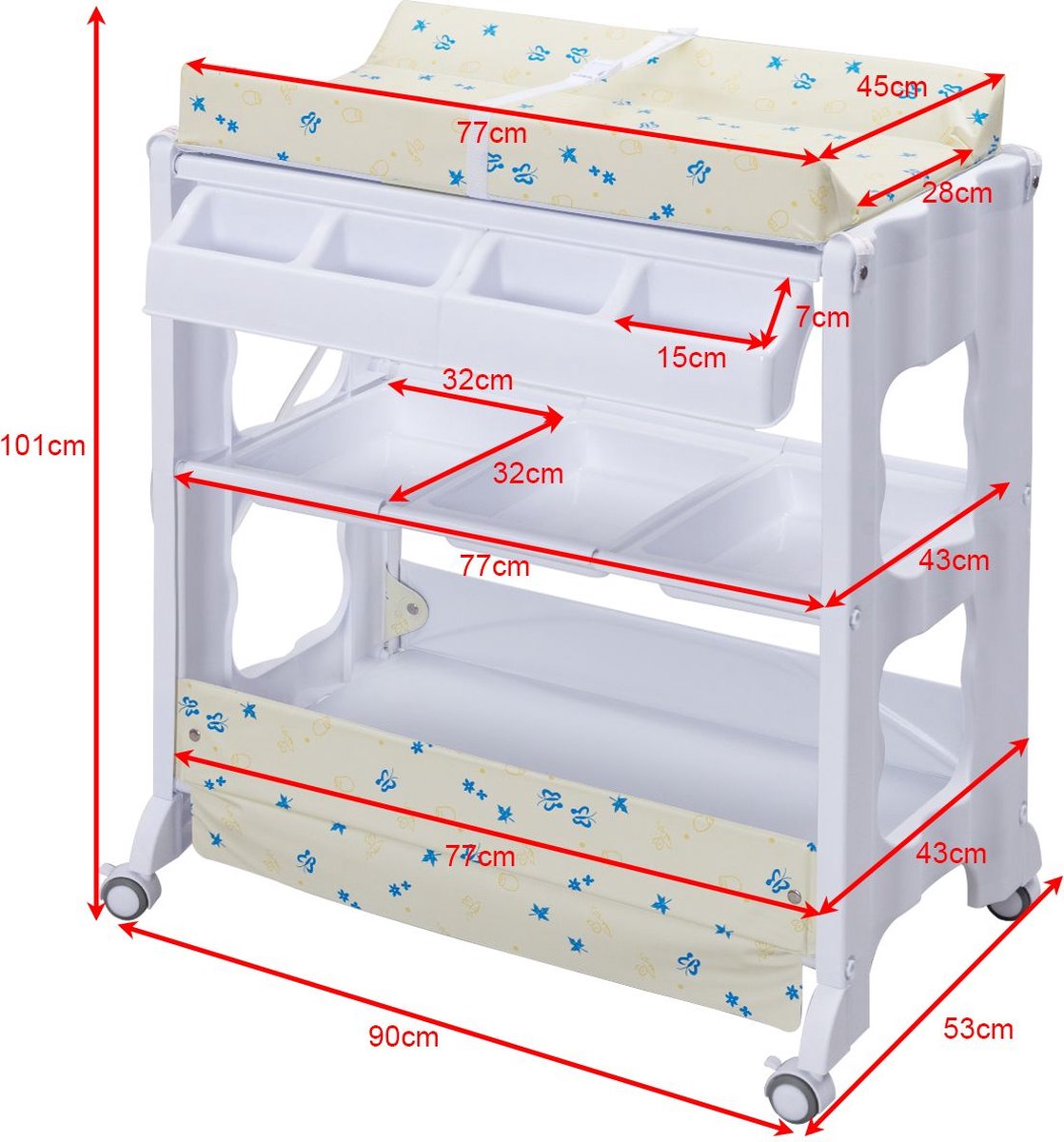 Hey ihr jungen Eltern! Dieser mobile Wickeltisch ist ein absoluter Game-Changer. Mit 5 Höhenstufen von 62-90 cm passt er sich jeder Körpergröße an - kein Rückenschmerz mehr! Super praktisch: Er lässt sich zusammenklappen und hat Rollen, also einfach vom Schlafzimmer ins Bad schieben. Der wasserfeste Oxford-Stoff ist leicht zu reinigen und die vielen Ablagefächer bieten Platz für Windeln, Feuchttücher und Cremes. Mit Sicherheitsgurt und hohen Rändern ist euer Baby bestens geschützt. Perfekt auch für kleine Wohnungen - nach Gebrauch einfach zusammenklappen und wegstellen. So macht Wickeln richtig Spaß!