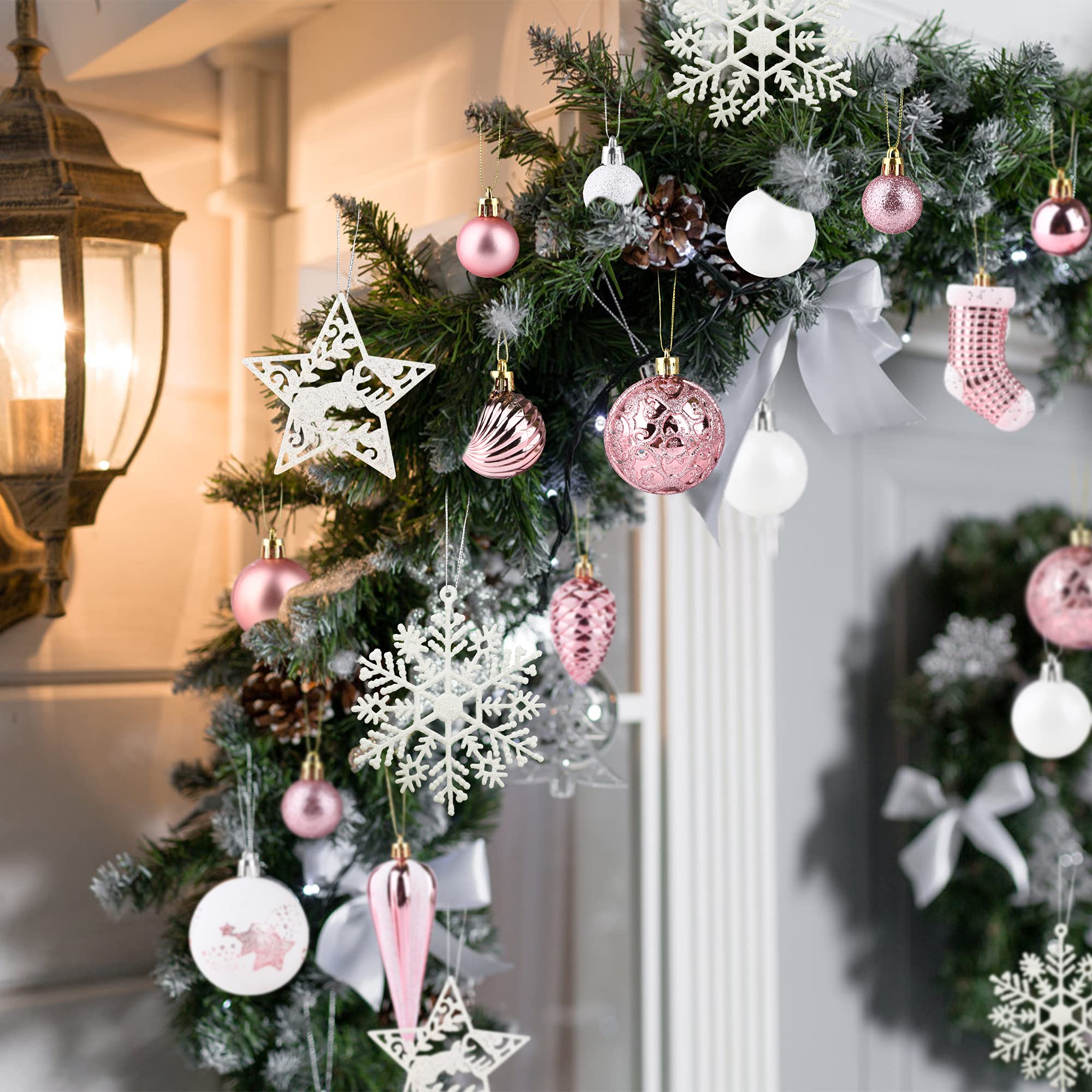 Dieses OIOYCLG Weihnachtskugeln-Set bringt festliche Stimmung in dein Zuhause! Mit 101 Teilen hast du alles, was du für eine üppige Weihnachtsbaum-Dekoration brauchst. Enthalten sind 96 Kugeln in verschiedenen Größen (3cm, 4cm, 6cm) in wunderschönem Roségold - matt, glänzend und glitzernd. Dazu kommen 3 dekorative Tannenzapfen und ein 6m langes Weihnachtsband. Alles aus hochwertigem, bruchsicherem Kunststoff - perfekt für Familien mit Kindern oder Haustieren. Die abnehmbaren Haken mit Haltebändern machen das Aufhängen super einfach. Nicht nur für den Christbaum geeignet, sondern auch für Fenster, Kränze, Kaminsimse oder Tischdekoration. Das klassische Roségold-Thema ist zeitlos elegant und passt zu jedem Einrichtungsstil. Ob für Weihnachten, Silvester, Partys oder festliche Anlässe - diese Deko lässt jedes Zuhause strahlen. Schaff dir deine persönliche Winterwunderland-Atmosphäre!