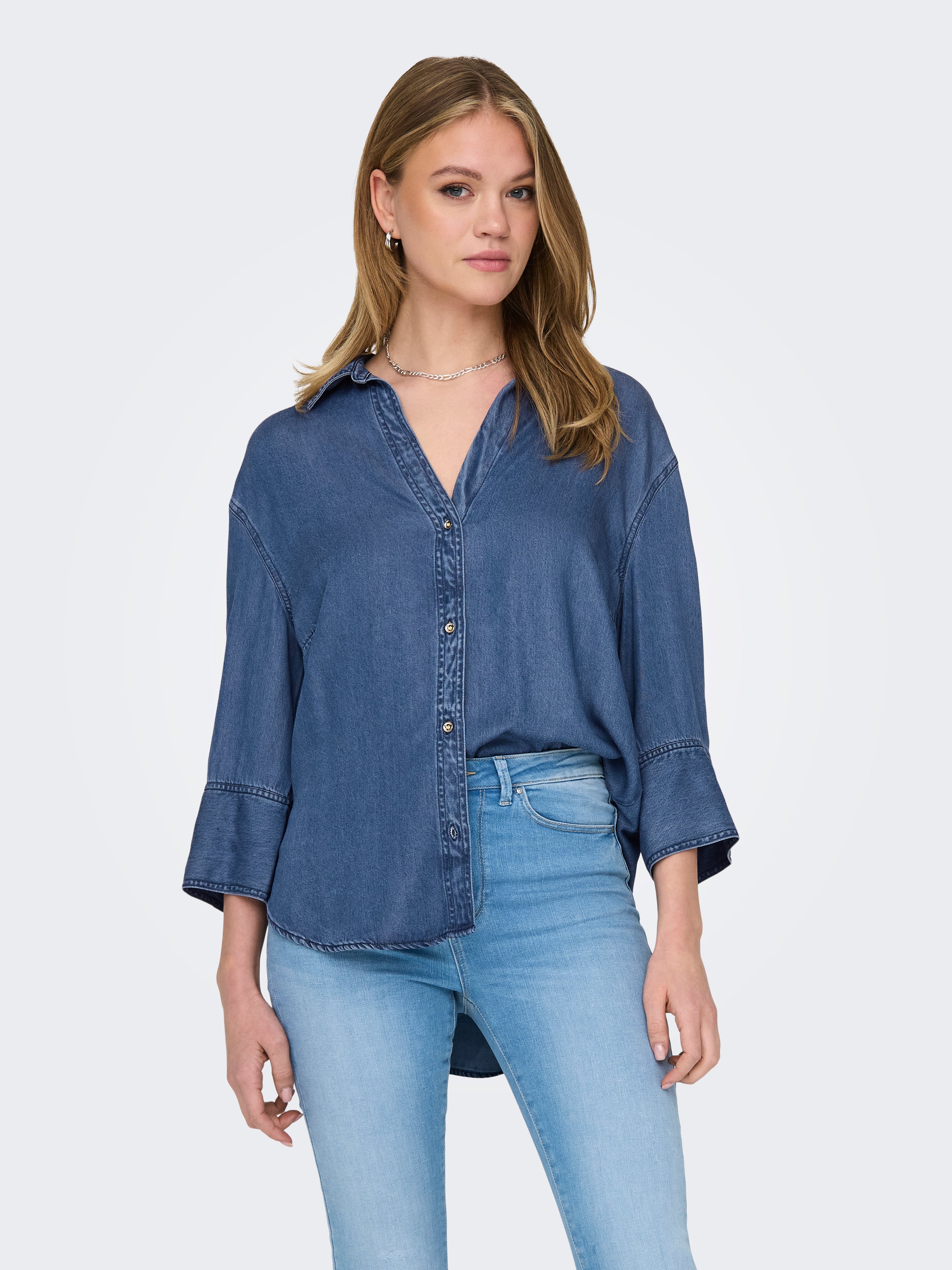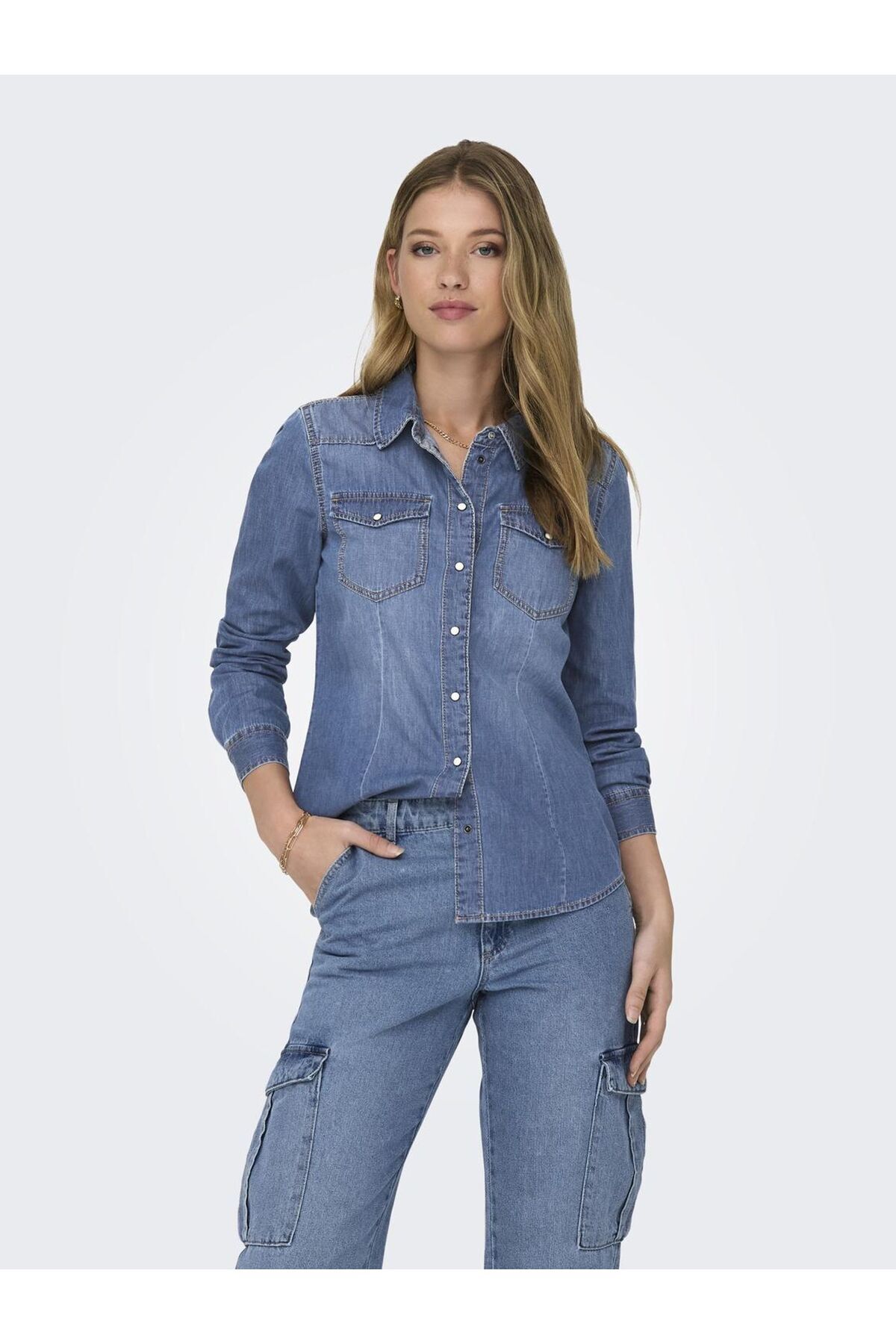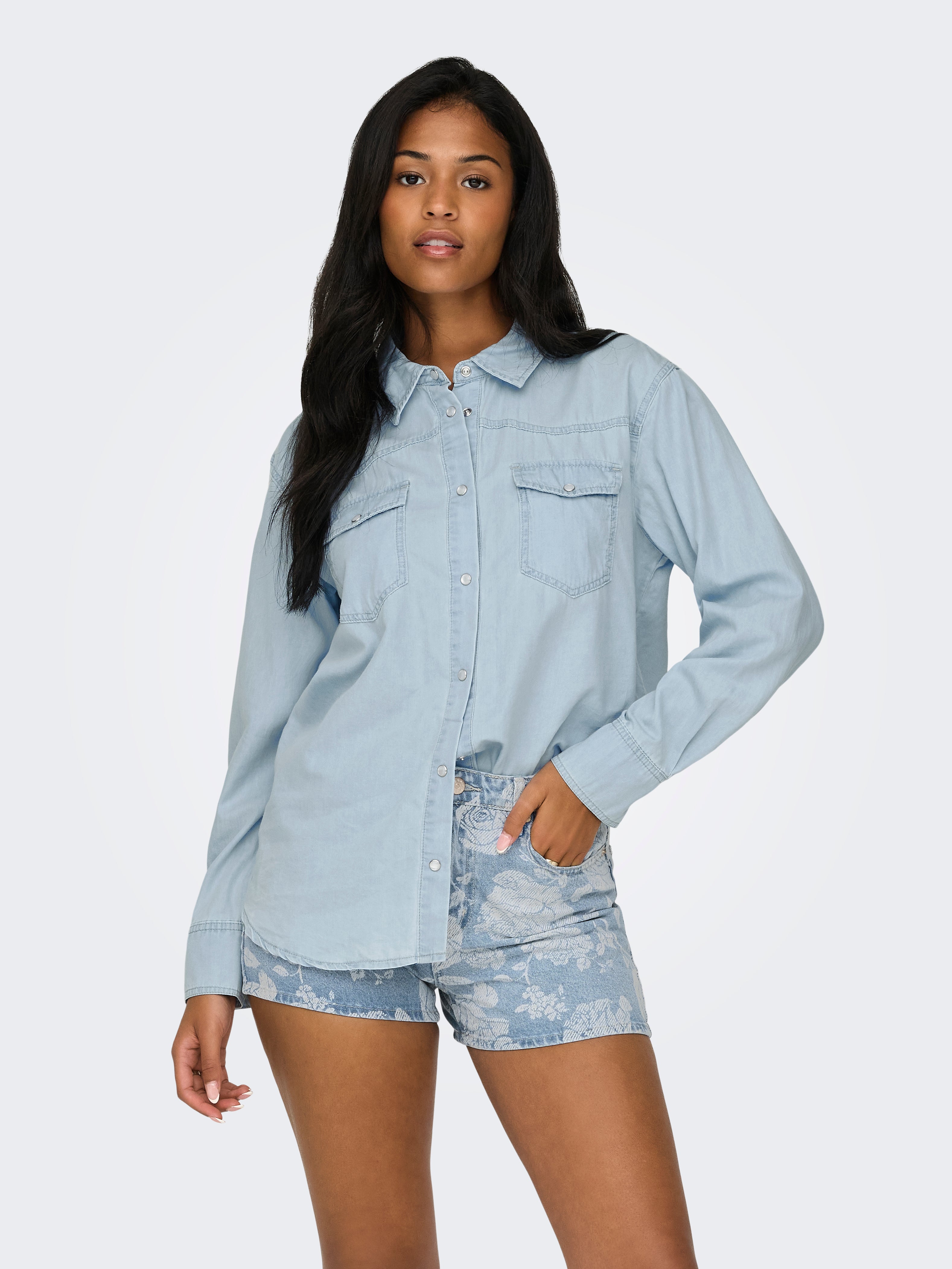 ONLY Damen Jeanshemd ONLLUCIA - Langarm Mit Ballonärmeln Aus 100% Baumwolle
