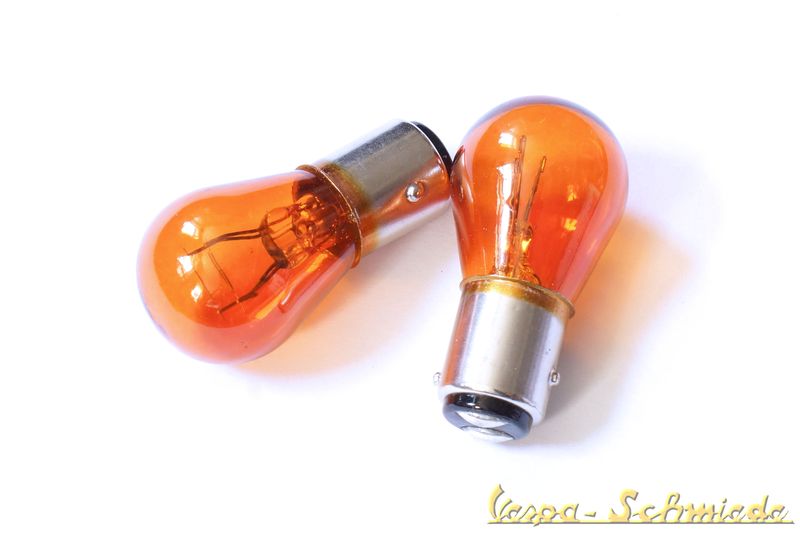 Passend für viele Fahrzeuge! Diese beiden orangenen Glühbirnen im BAY15d Sockel mit 21/5W sind genau das Richtige für dein Auto, Motorrad, Moped, Roller, Traktor oder LKW. Mit 24V Spannung - ideal für größere Fahrzeuge. Die orange Farbe gibt das typische Blinklicht. Einfach die alte Birne rausdrehen und diese rein - schon hast du wieder funktionierende Blinker. Im 2er-Set - praktisch, denn meist braucht man ja zwei Stück. Gute Qualität zu fairem Preis. Für alle, die selbst am Fahrzeug schrauben oder Ersatz brauchen. Einfach bestellen und einbauen - dein Blinker funktioniert wieder einwandfrei. Immer gut, Ersatzbirnen daheim zu haben!